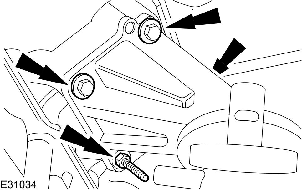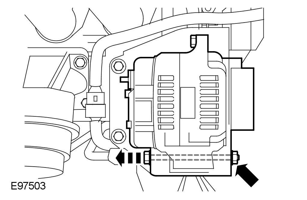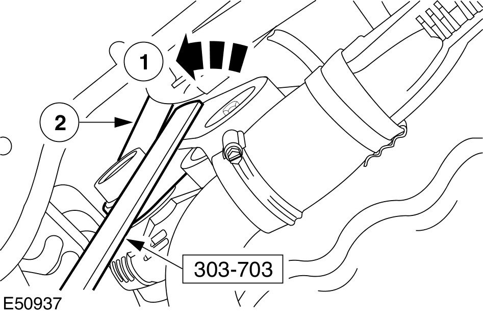- Using the special tool 303-703, rotate the accessory drive belt tensioner counter-clockwise.