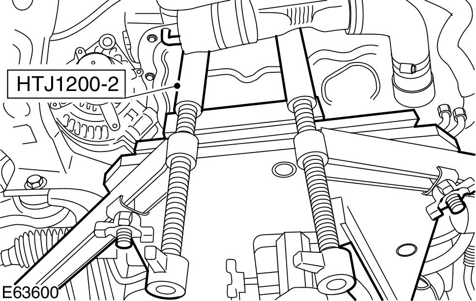 13 Using a suitable hydraulic jack, raise and support the engine.