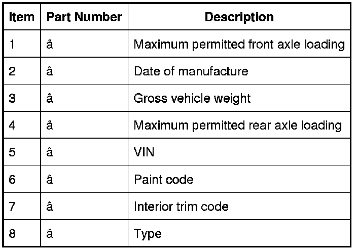 Vehicle Identification Number (Typical)