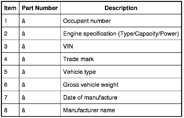 VIN Label (Saudi Arabia and Gulf States)