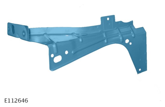 The front fender support bracket is serviced as a separate weld-on panel.