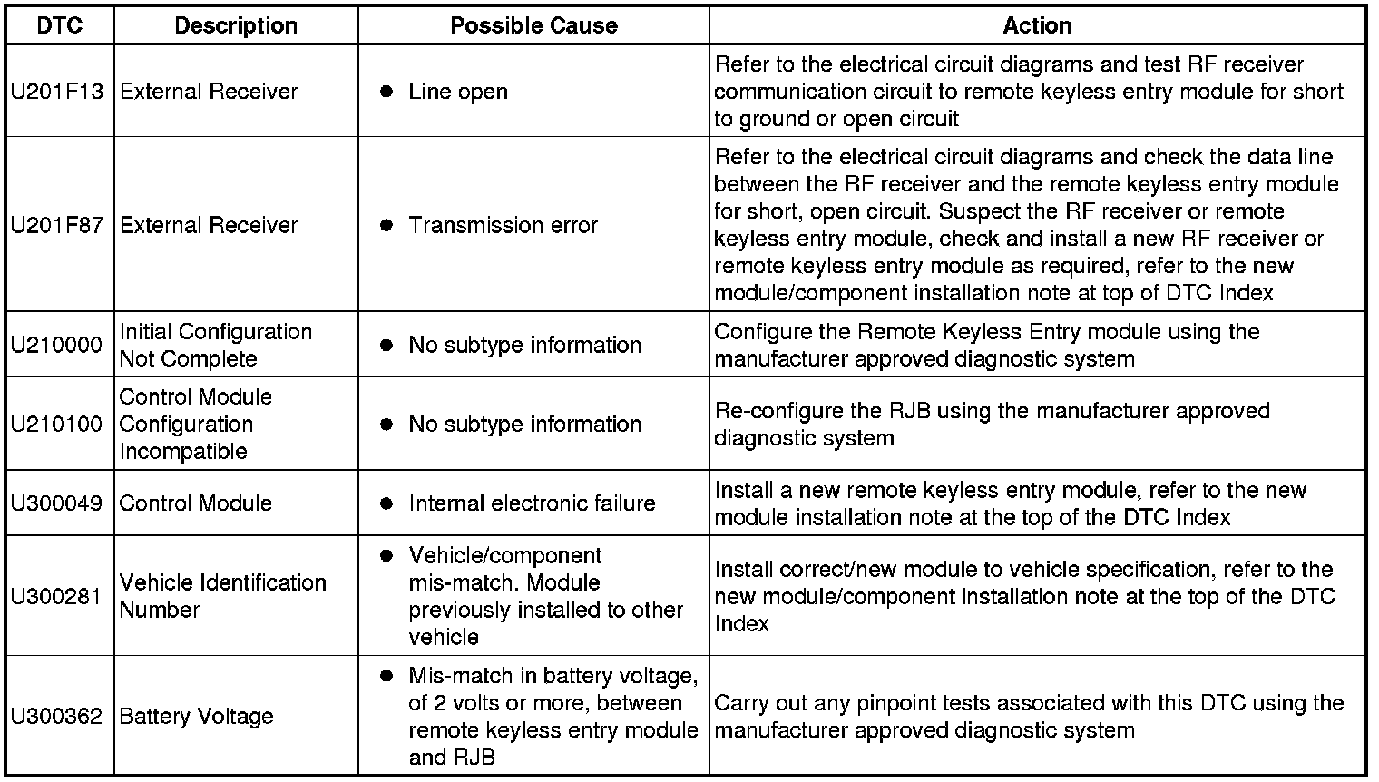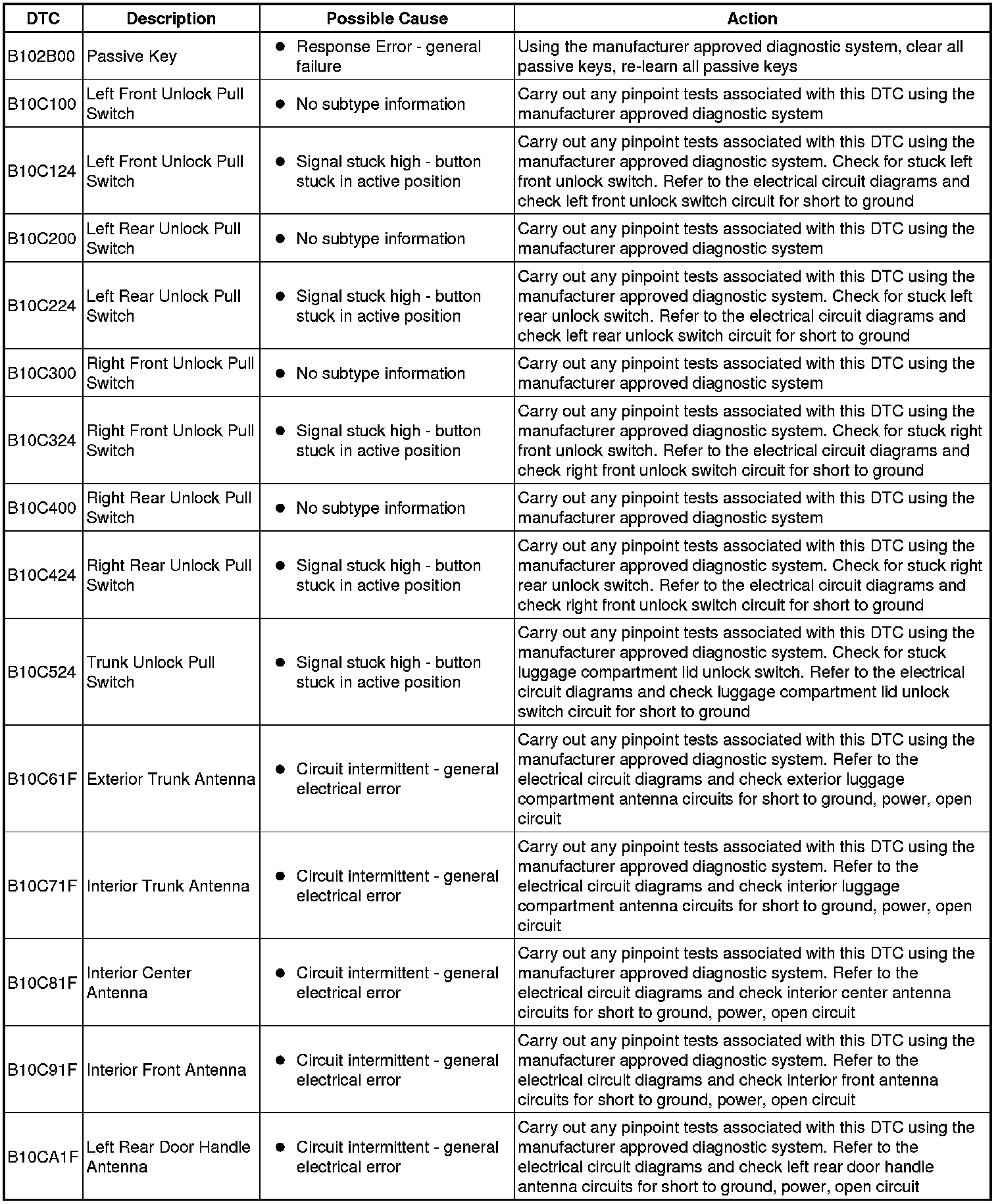 Generic scan tools may not read the codes listed, or may read only five digit codes. Match the five digits from the scan tool to the first five digits of the seven digit code listed to identify the fault (the last two digits give additional information read by the manufacturer approved diagnostic system).