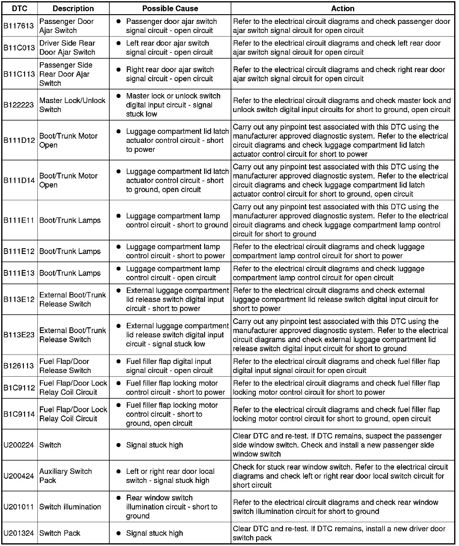 Generic scan tools may not read the codes listed, or may read only five digit codes. Match the five digits from the scan tool to the first five digits of the seven digit code listed to identify the fault (the last two digits give additional information read by the manufacturer approved diagnostic system).