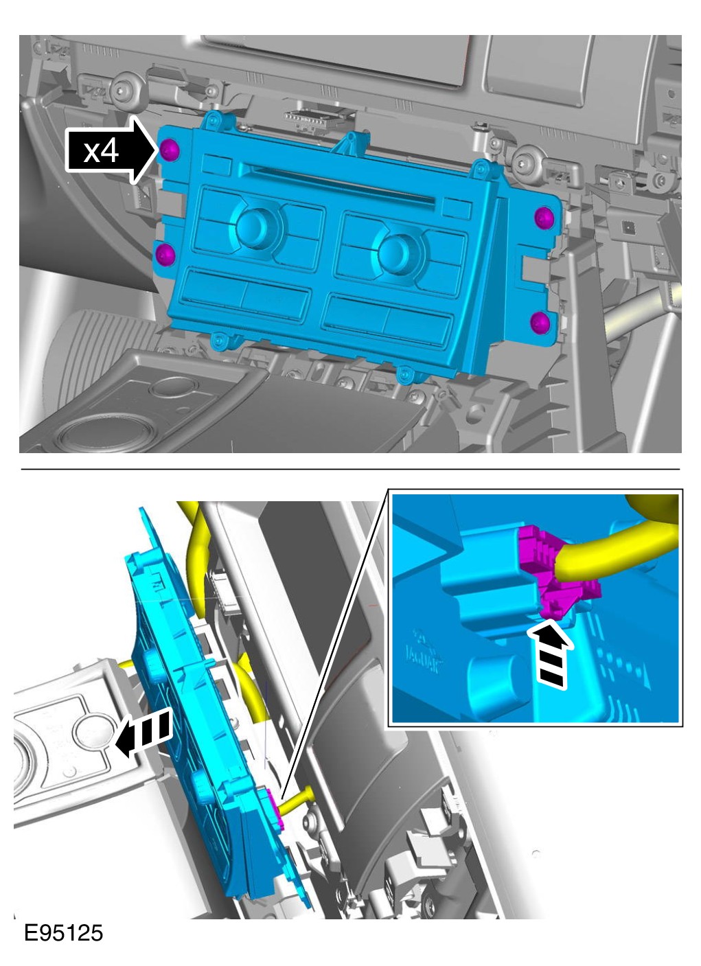 1 Remove both floor console side trim panels.