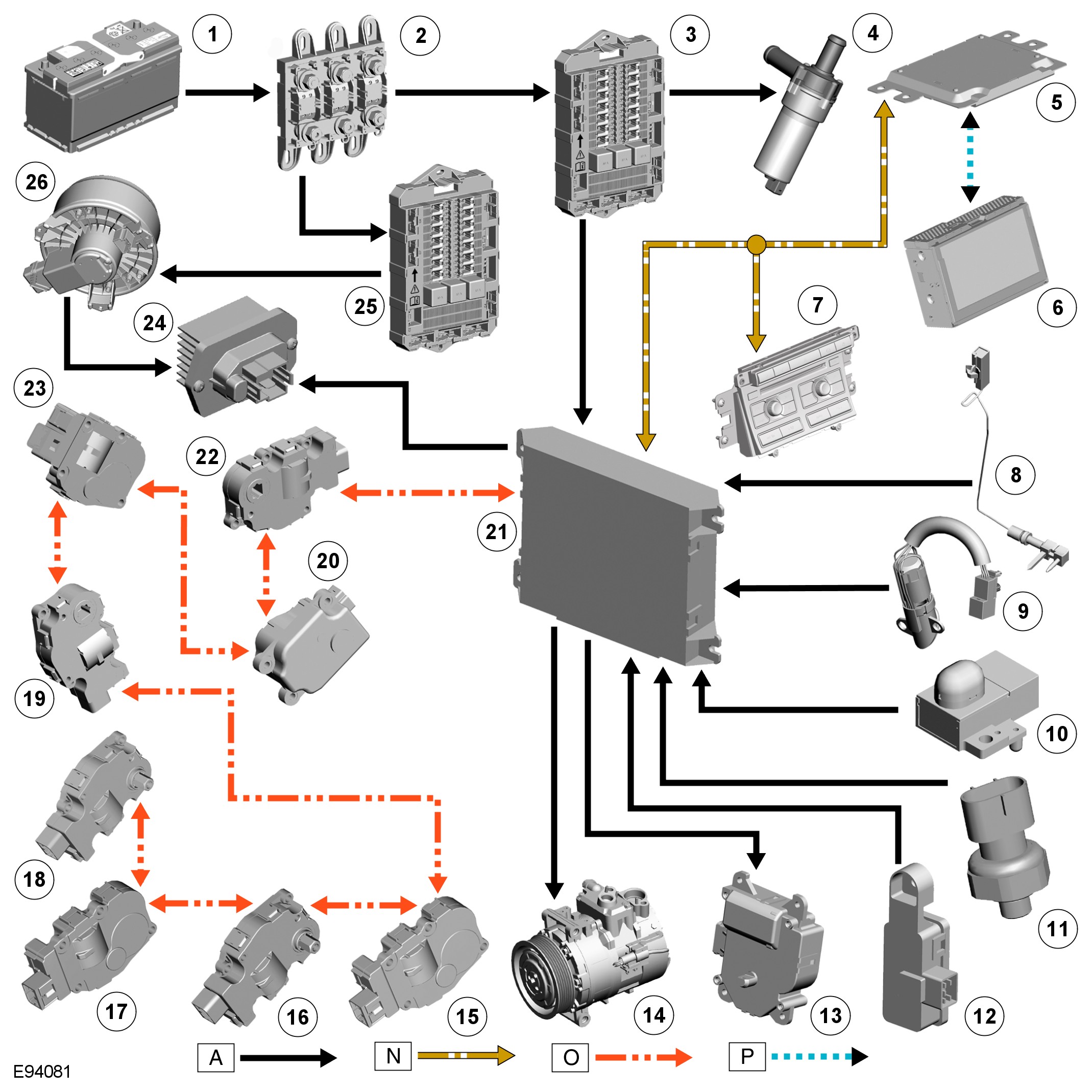 A = Hardwired; N = Medium speed CAN (controller area network) bus; O = LIN (local interconnect network) bus; P = Media orientated system transport (MOST) ring.