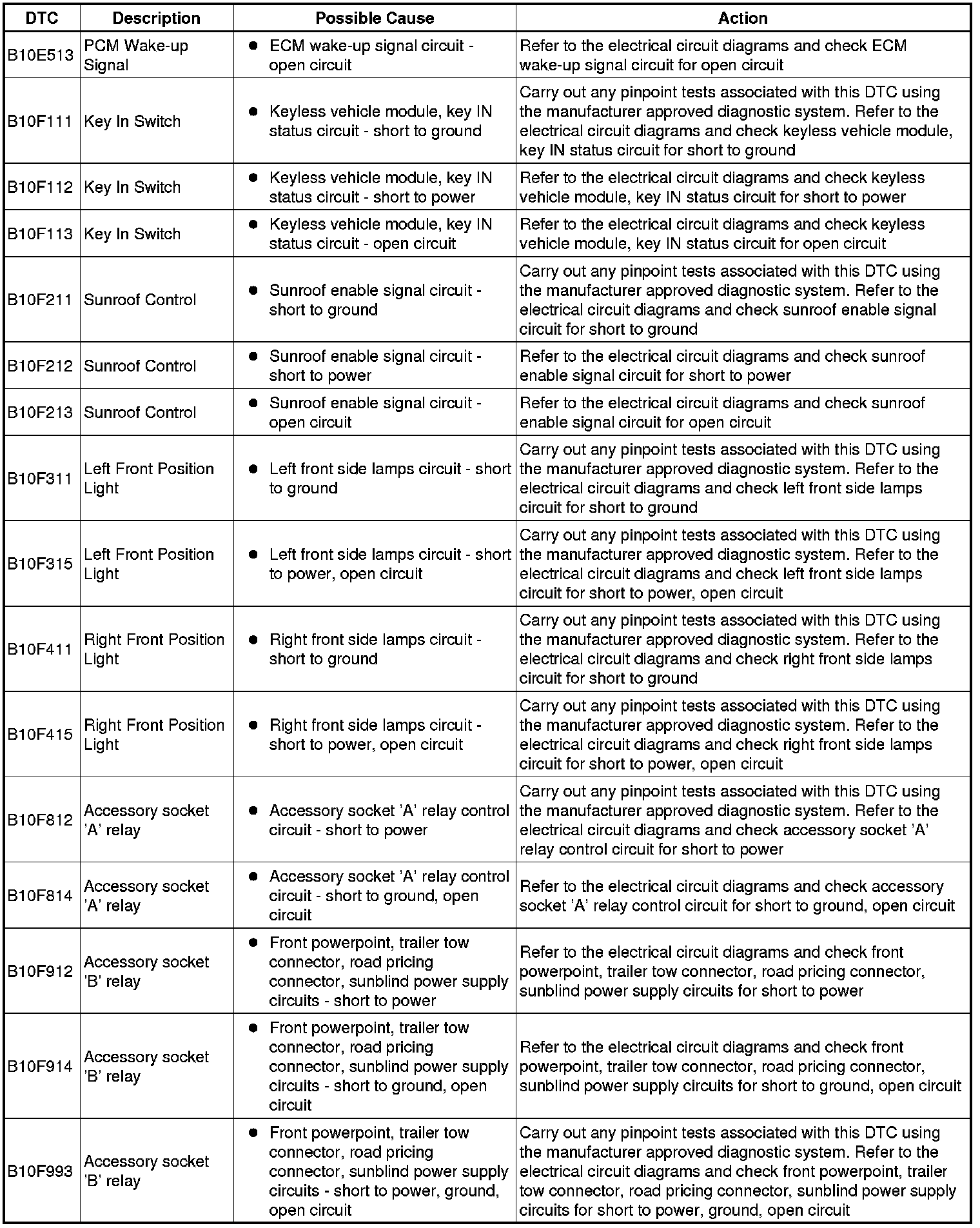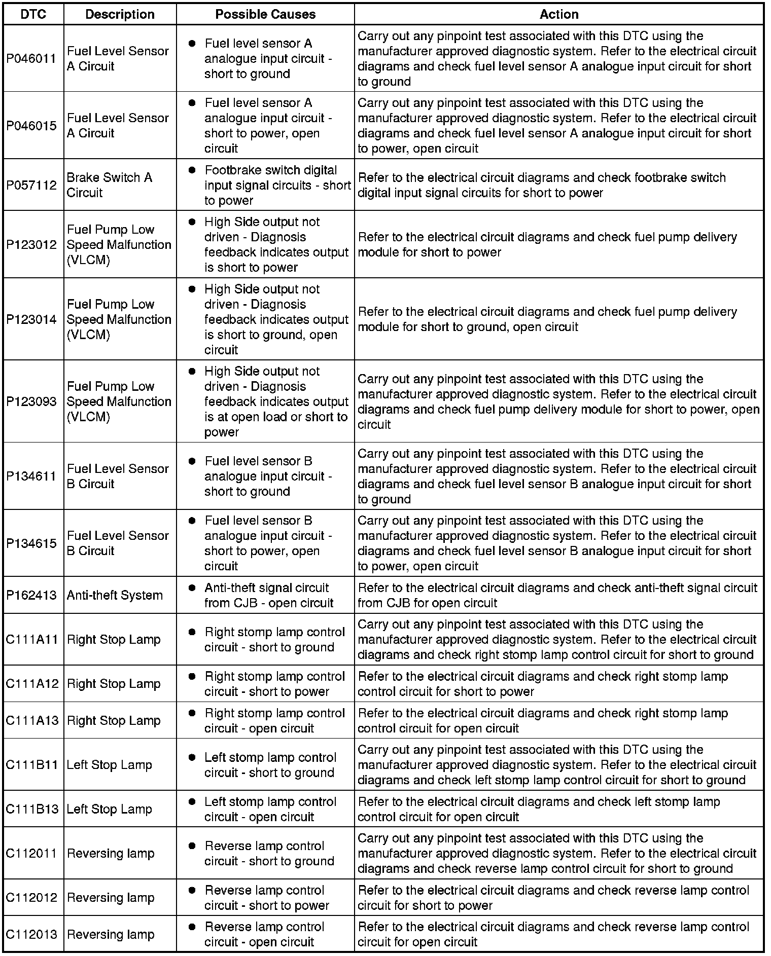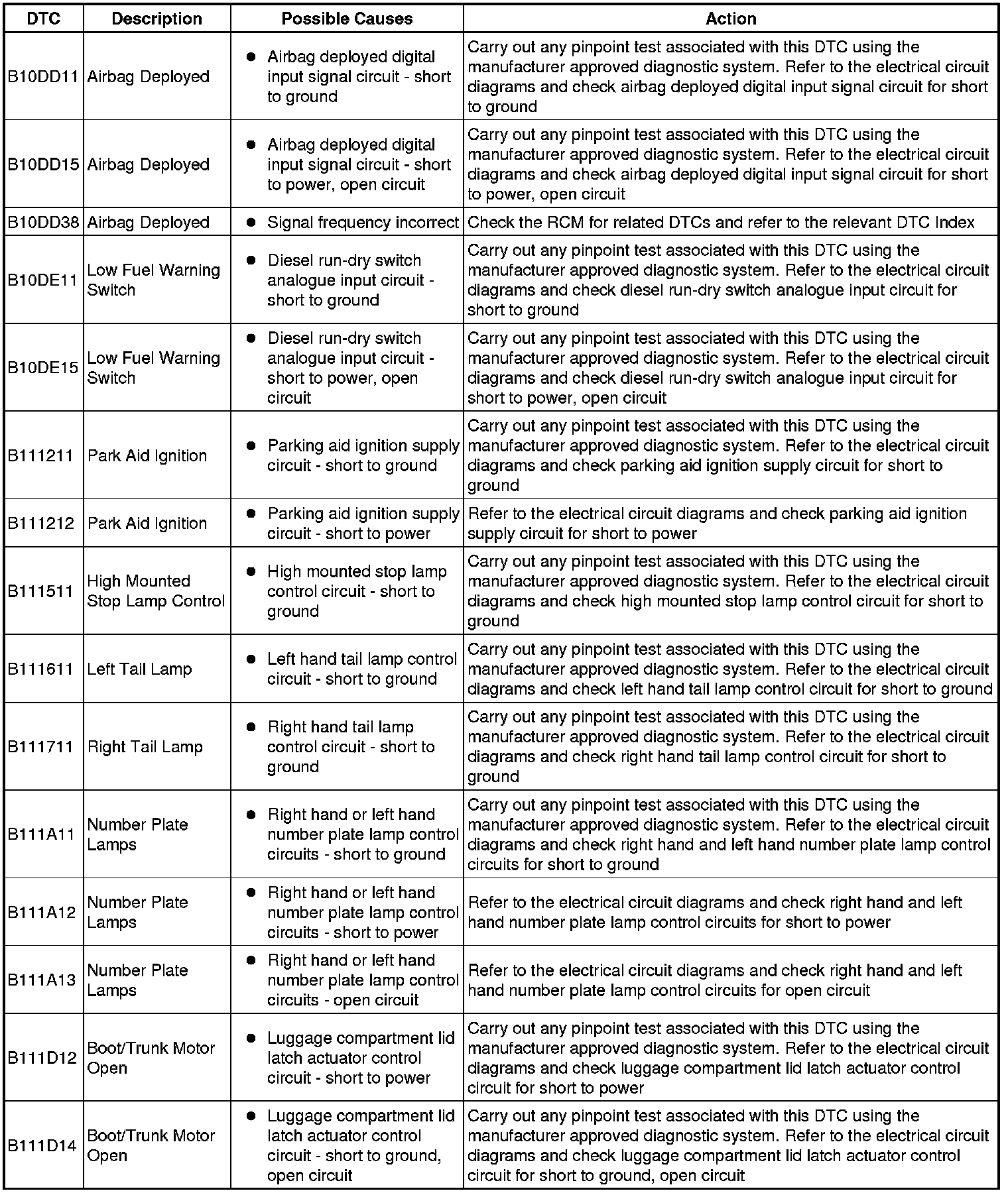 Generic scan tools may not read the codes listed, or may read only five digit codes. Match the five digits from the scan tool to the first five digits of the seven digit code listed to identify the fault (the last two digits give extra information read by the manufacturer-approved diagnostic system).