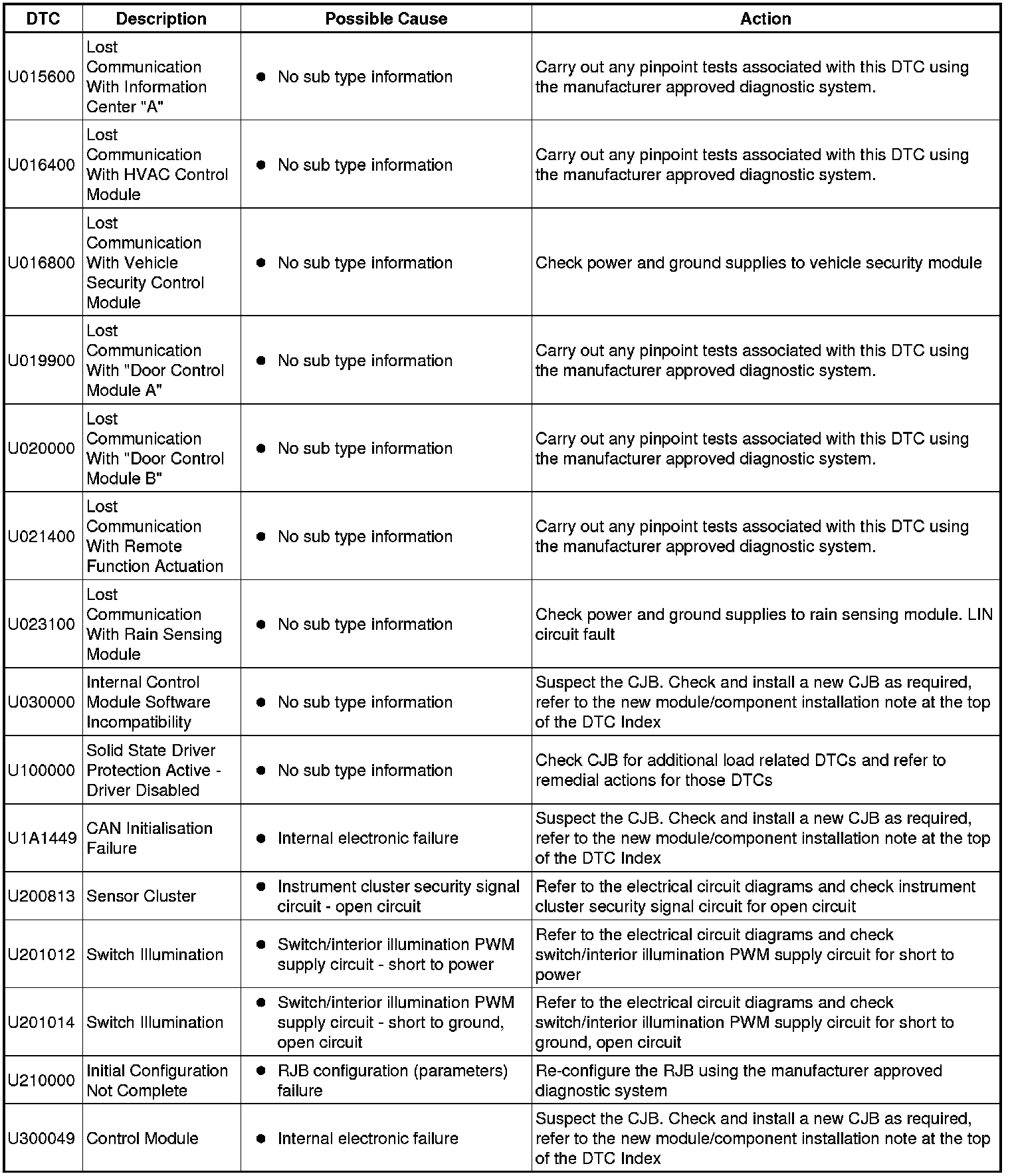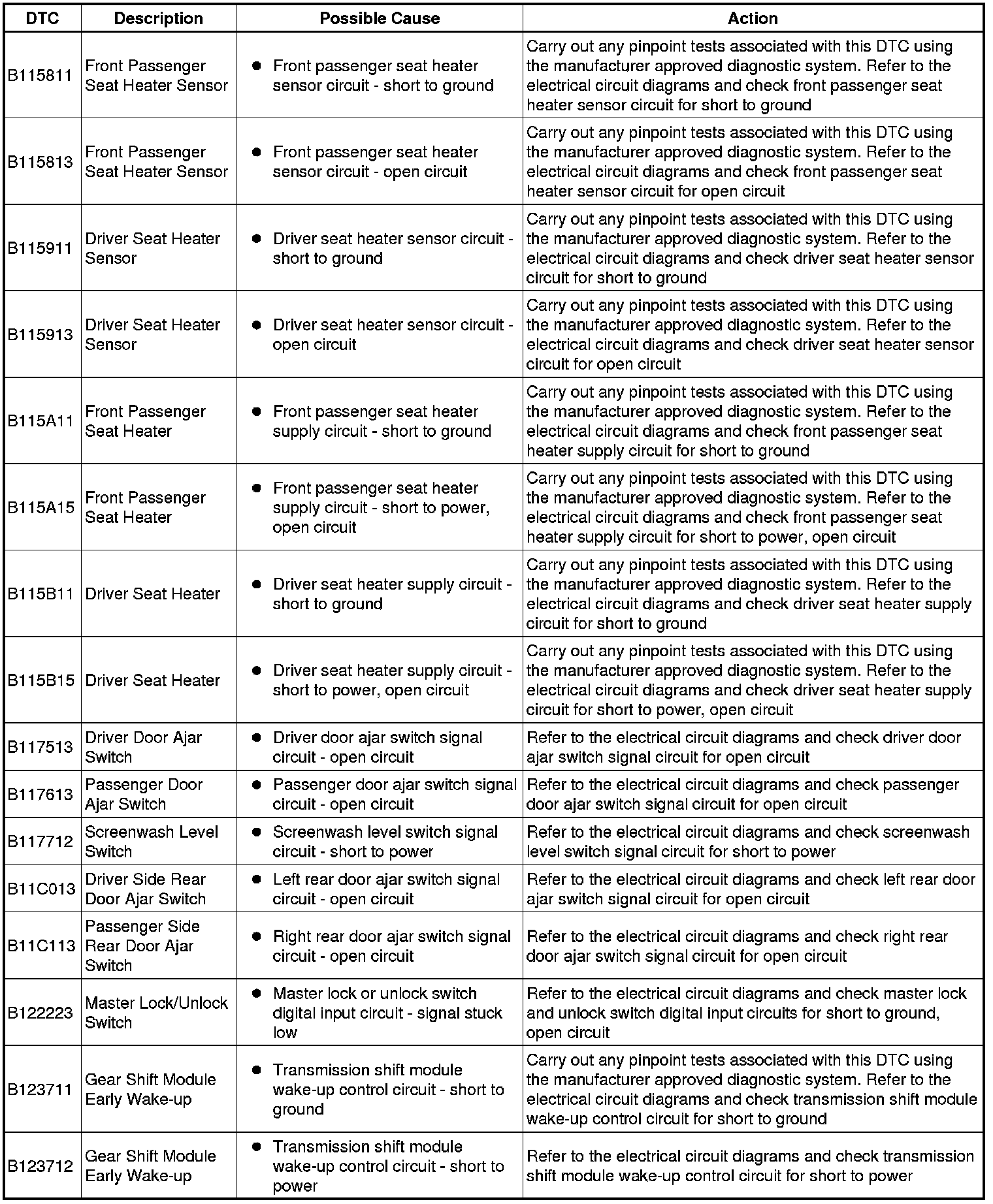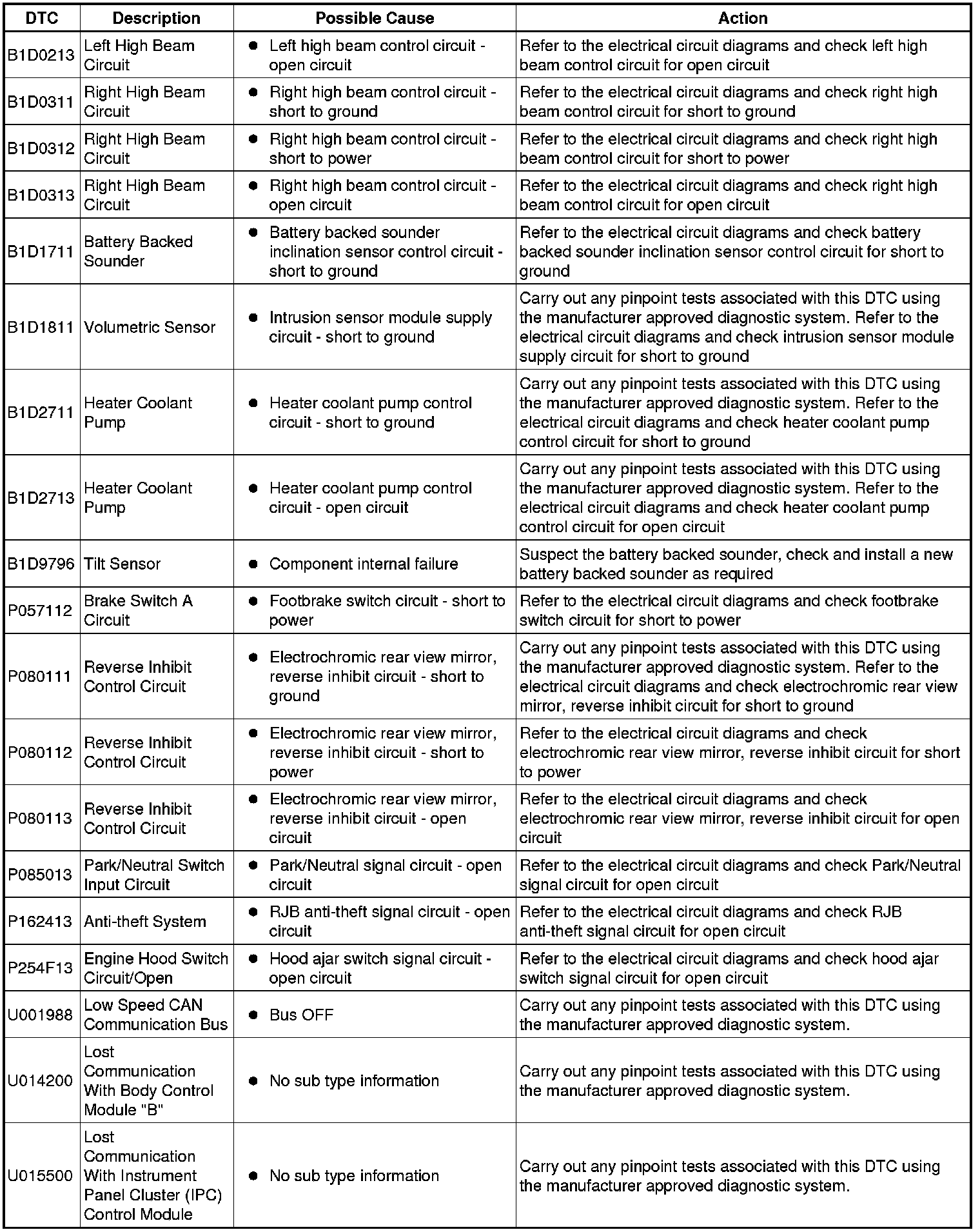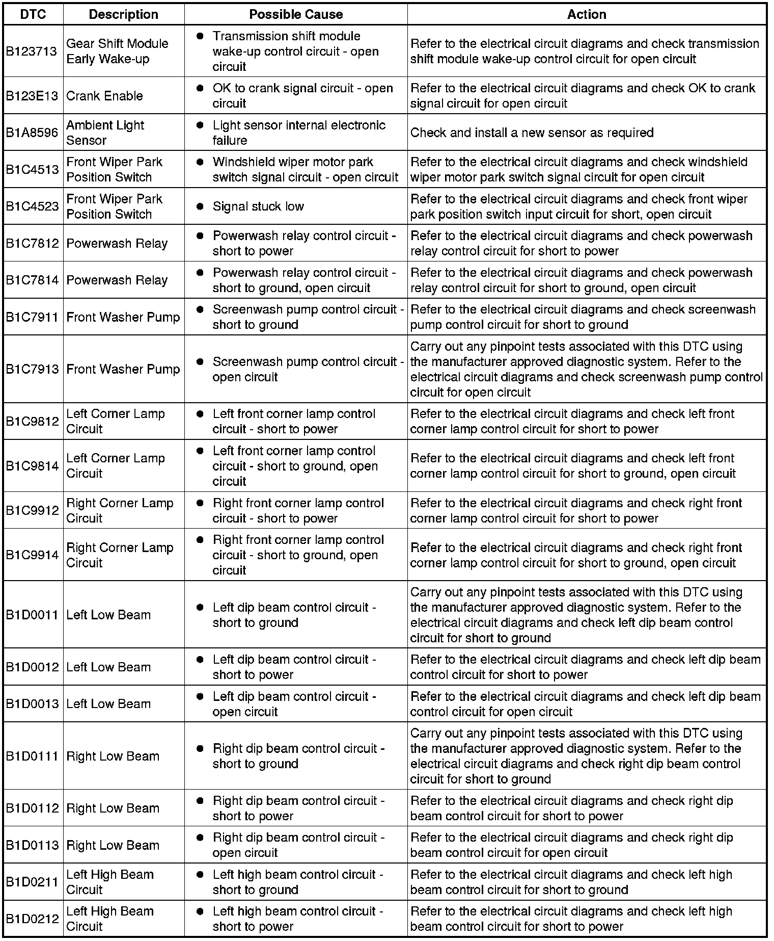 Generic scan tools may not read the codes listed, or may read only five digit codes. Match the five digits from the scan tool to the first five digits of the seven digit code listed to identify the fault (the last two digits give extra information read by the manufacturer-approved diagnostic system).