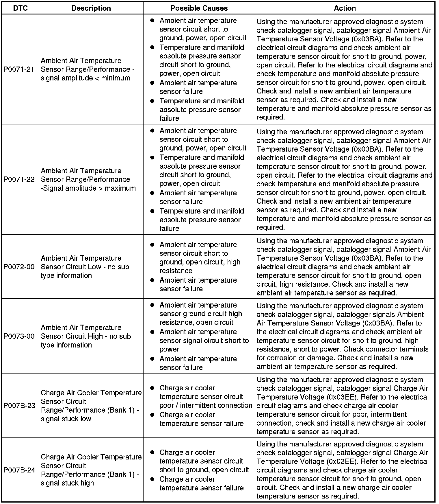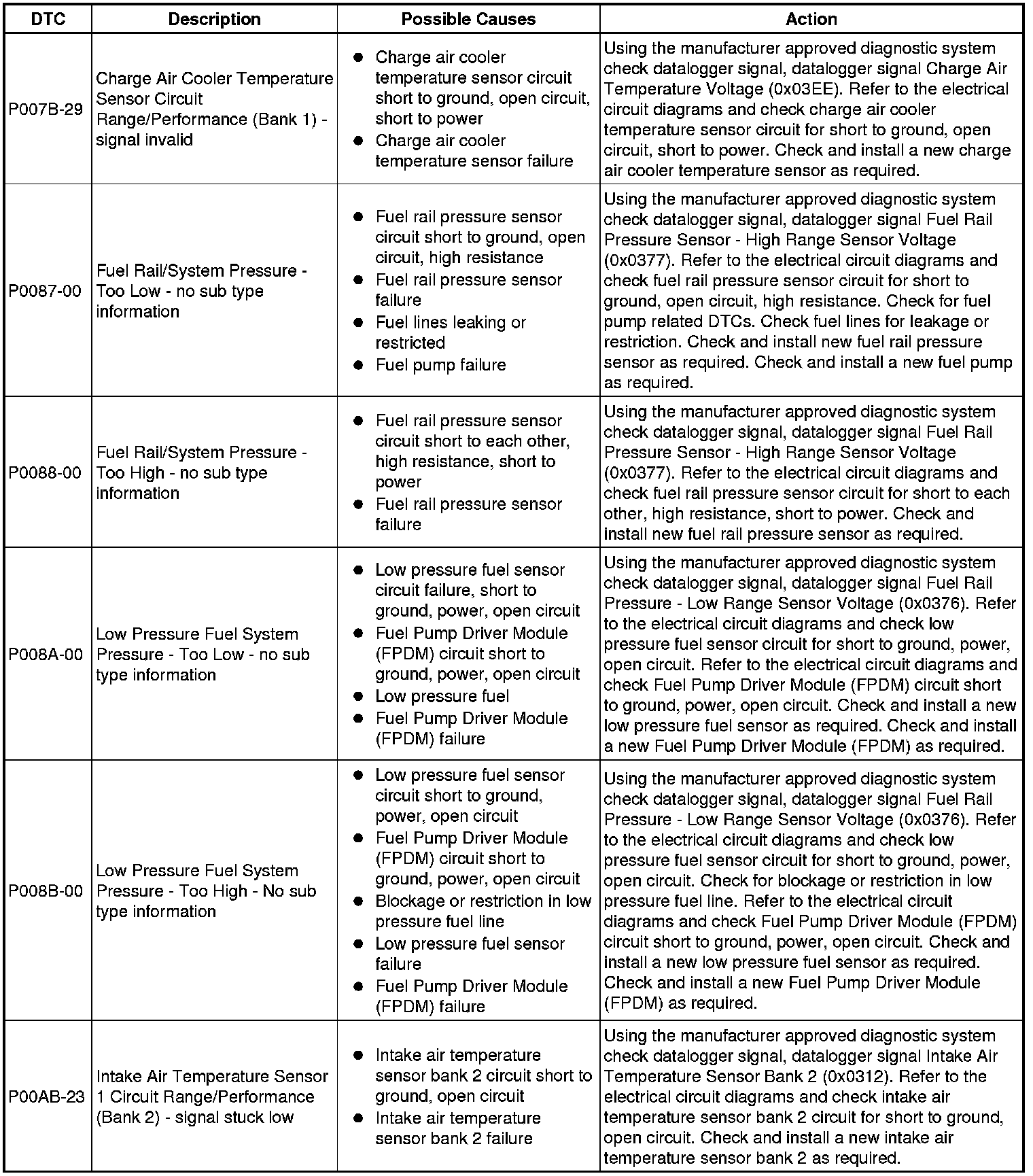 Generic scan tools may not read the codes listed, or may read only five digit codes. Match the five digits from the scan tool to the first five digits of the seven digit code listed to identify the fault (the last two digits give additional information read by the manufacturer-approved diagnostic system).