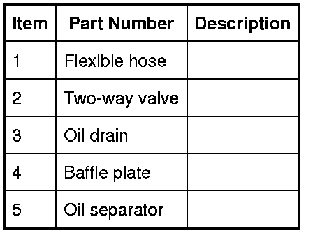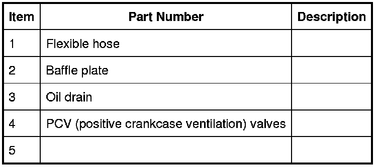 The full load breather consists of an oil separator, a two-way valve and a flexible hose. The oil separator and the two-way valve are installed in the top of the LH (left-hand) cylinder head cover. The flexible hose connects the LH (left-hand) cylinder head cover to the LH (left-hand) air duct of the intake air distribution and filtering system.