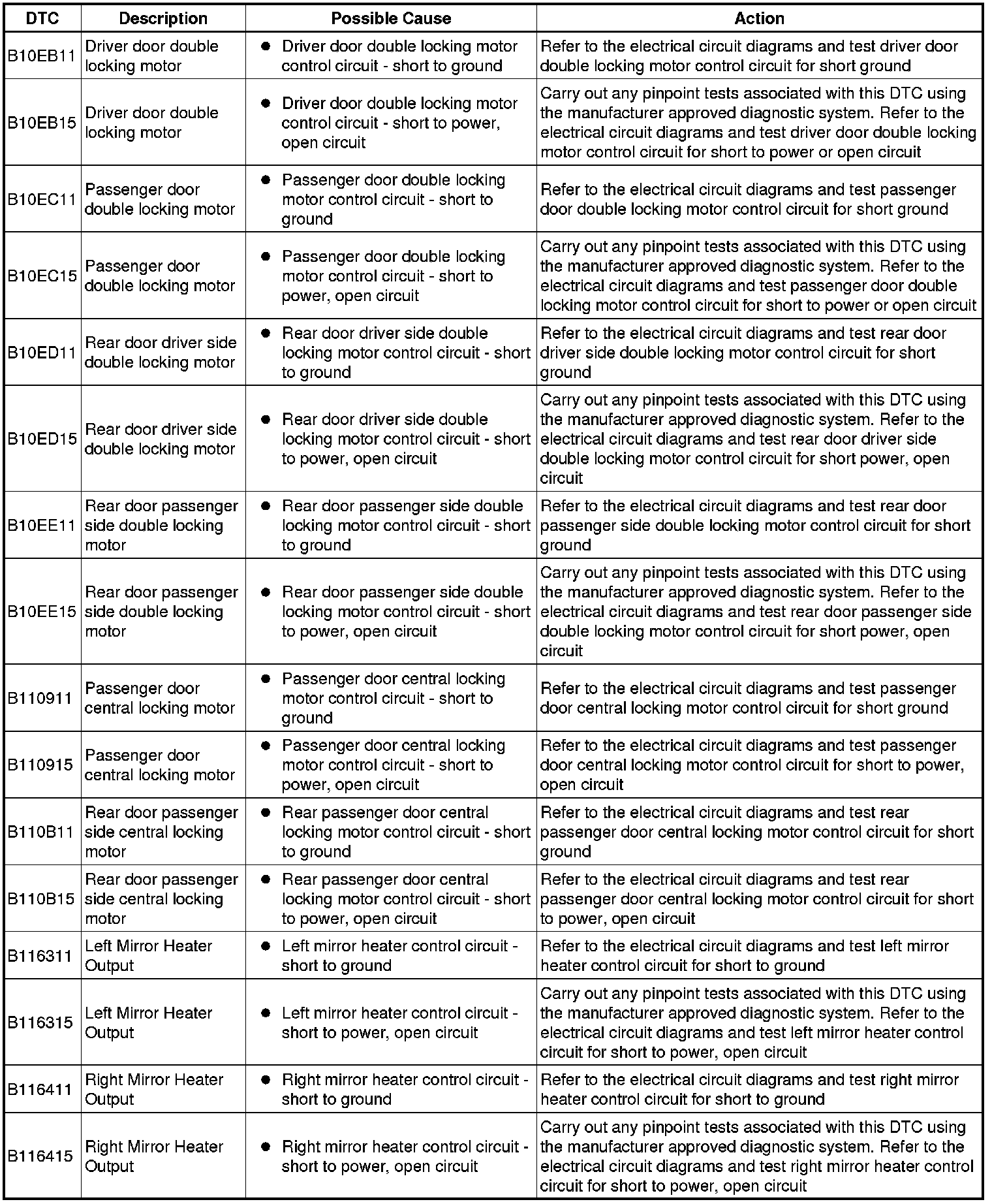 Generic scan tools may not read the codes listed, or may read only five digit codes. Match the five digits from the scan tool to the first five digits of the seven digit code listed to identify the fault (the last two digits give additional information read by the manufacturer approved diagnostic system).