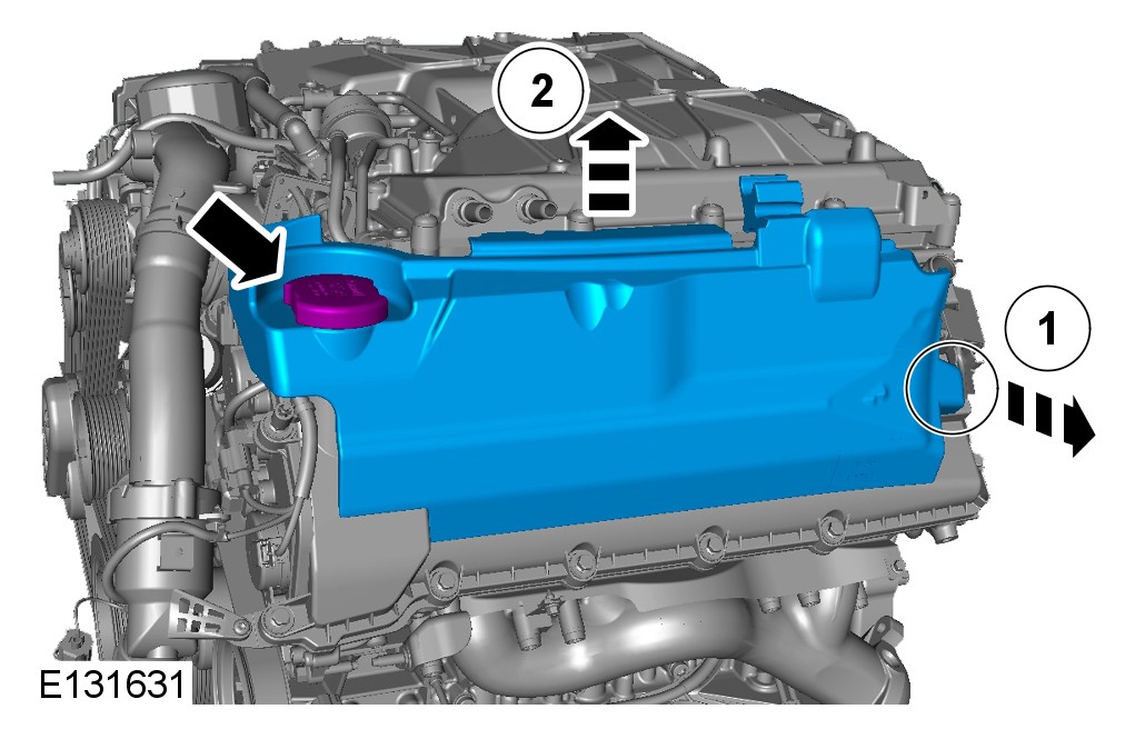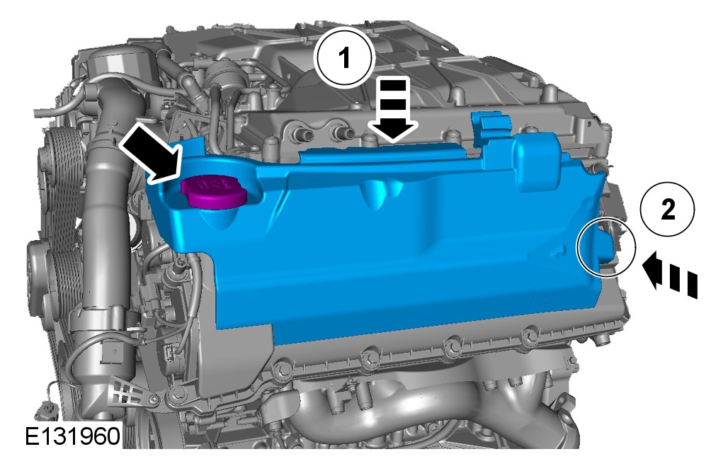 For additional information, refer to Engine Cover - 5.0L NA V8 - AJ133/5.0L SC V8 - AJ133 Service and Repair
