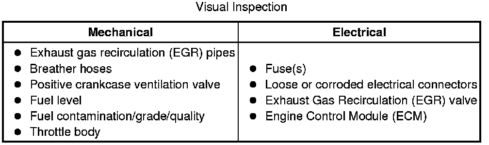 4 If the cause is not visually evident, verify the symptom and refer to the Symptom Chart, alternatively check for Diagnostic Trouble Codes (DTCs) and refer to the DTC Index.