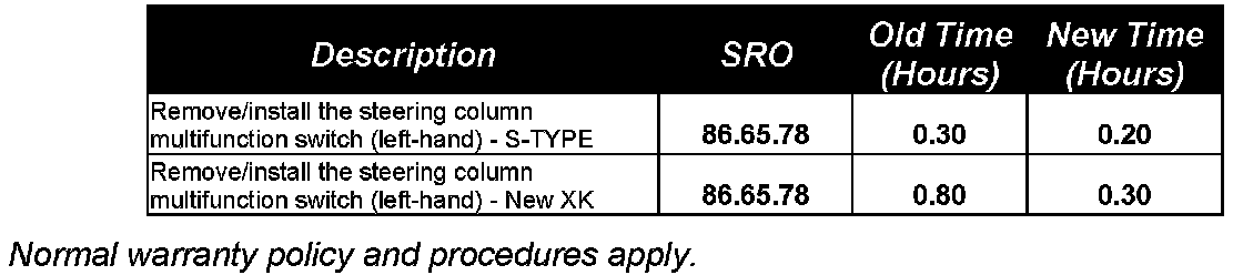 A revised procedure for the removal and installation of the *left-hand* steering column multifunction switch has been released. It is no longer necessary to remove the left-hand side lower fascia panel.