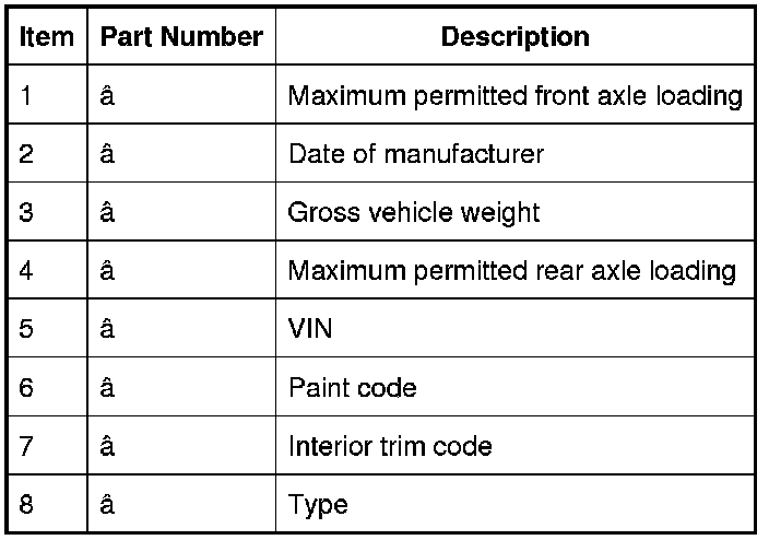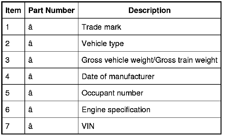 Vehicle Identification Number (Typical)