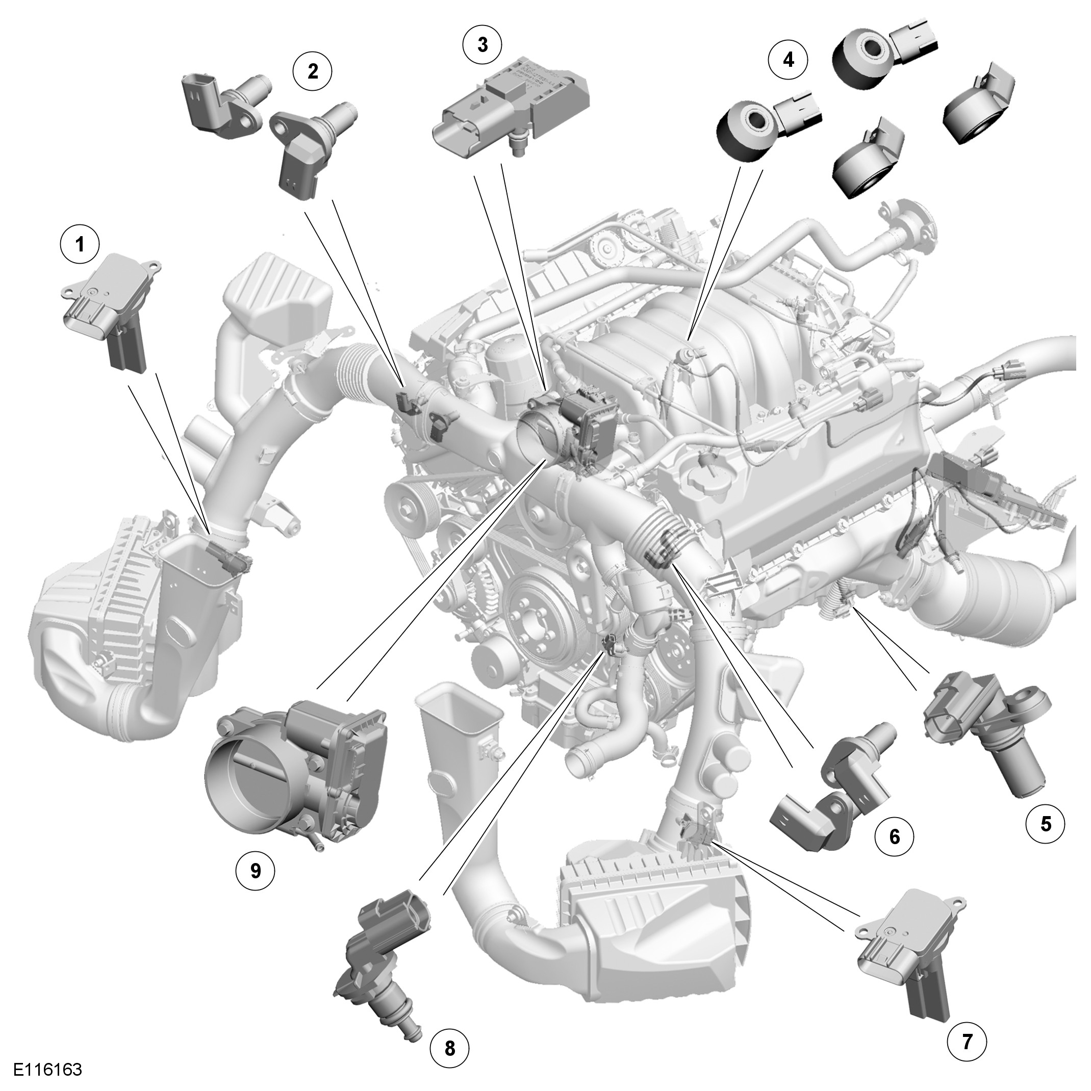 - Ignition coils (8 off). For additional information, refer to 303-07 Engine Ignition.
