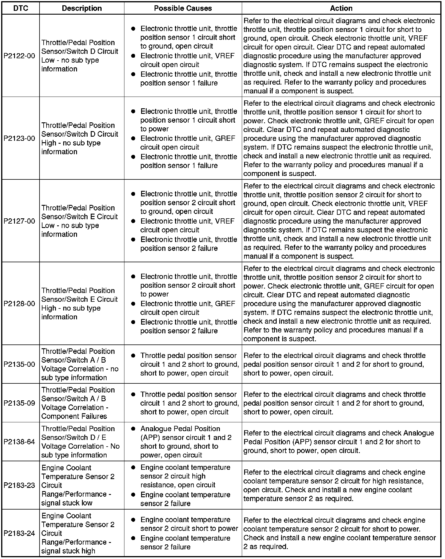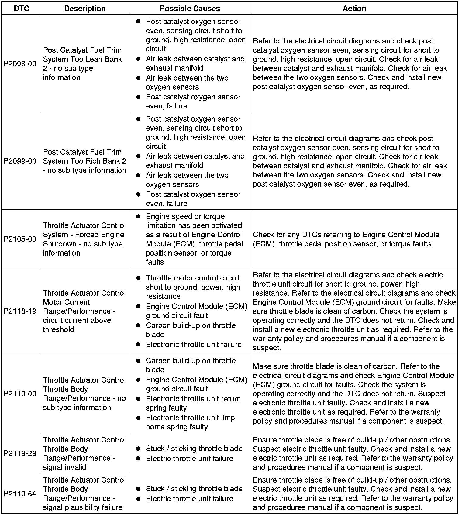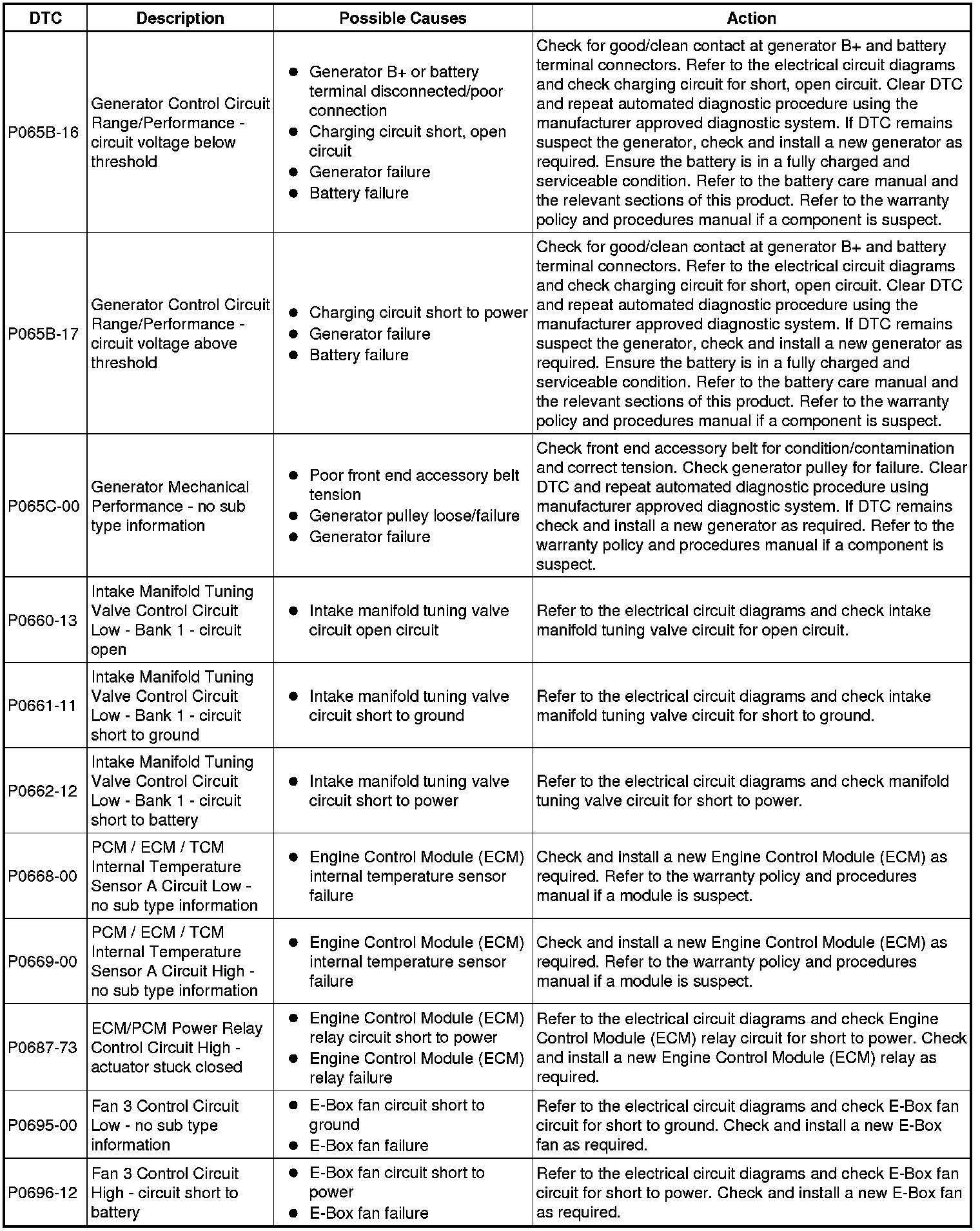 Generic scan tools may not read the codes listed, or may read only five digit codes. Match the five digits from the scan tool to the first five digits of the seven digit code listed to identify the fault (the last two digits give additional information read by the manufacturer-approved diagnostic system).