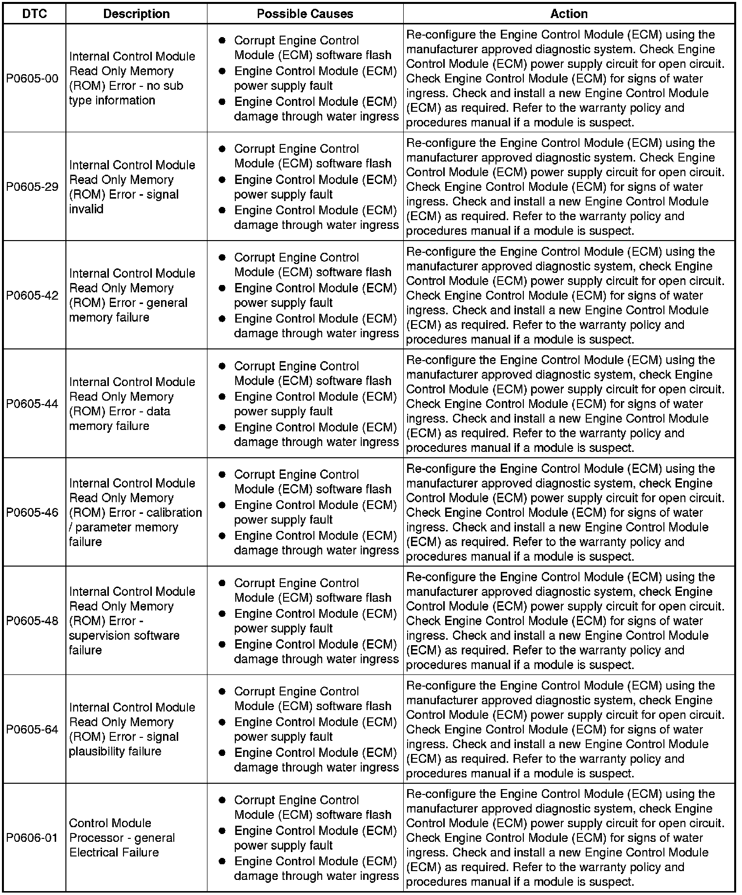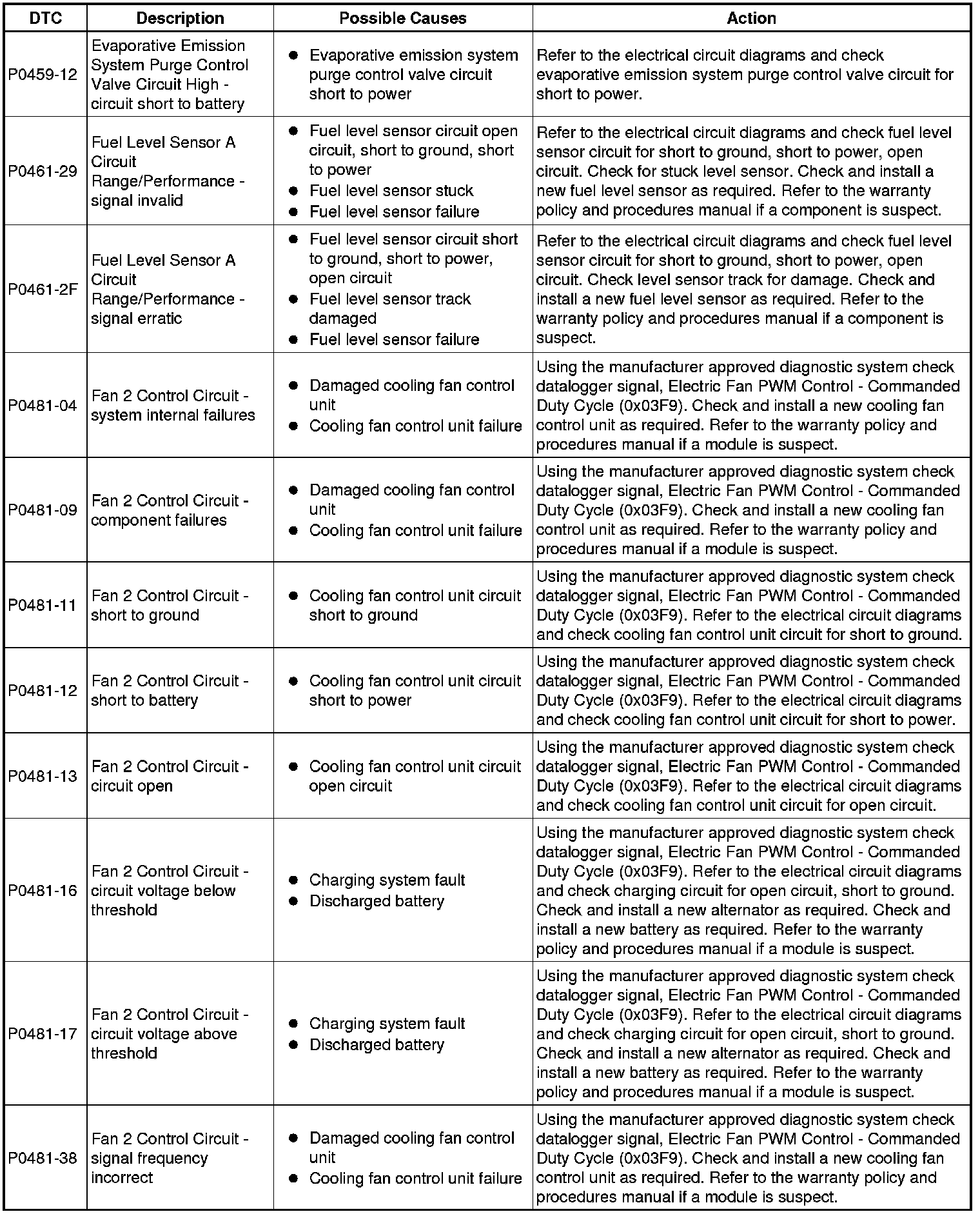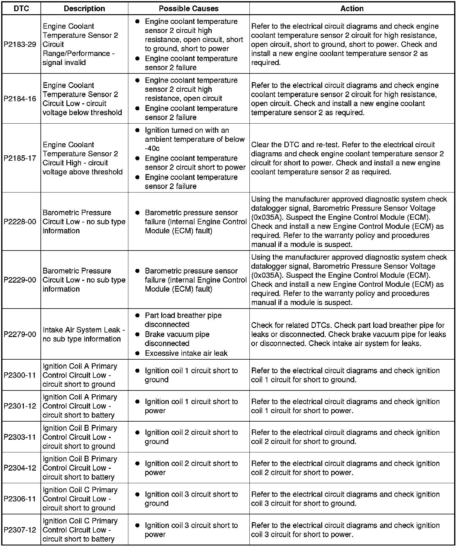 Generic scan tools may not read the codes listed, or may read only five digit codes. Match the five digits from the scan tool to the first five digits of the seven digit code listed to identify the fault (the last two digits give additional information read by the manufacturer-approved diagnostic system).