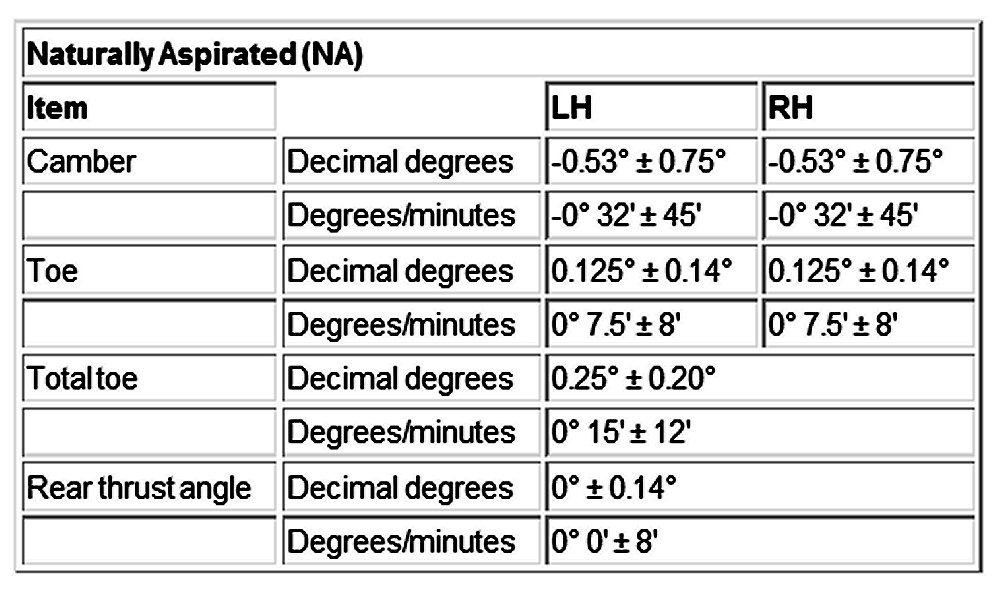 - Rear thrust angle = (LH toe - RH toe) divided by 2.