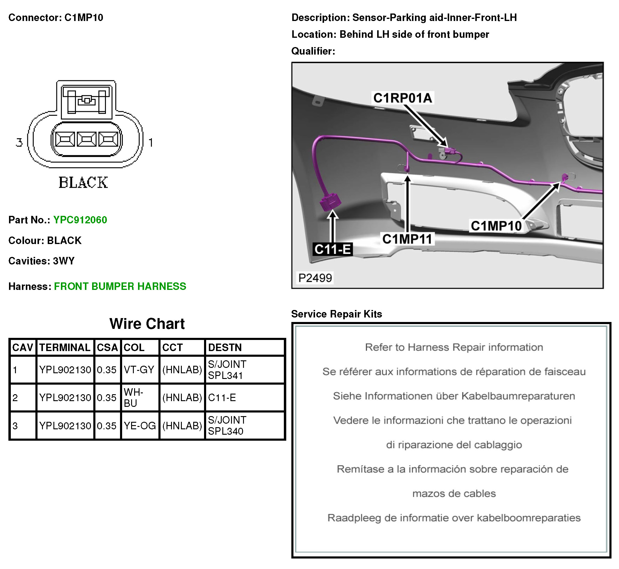 C1MP10 Sensor-Parking Aid-Inner-Front-LH