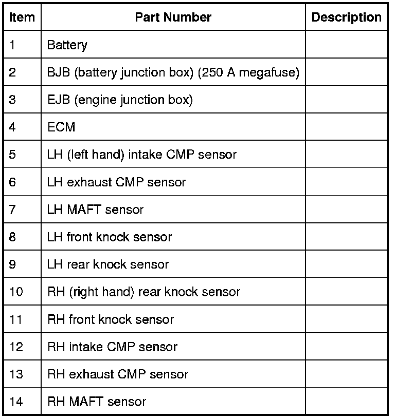 - Ignition coils (8 off). For additional information, refer to Engine Ignition Description