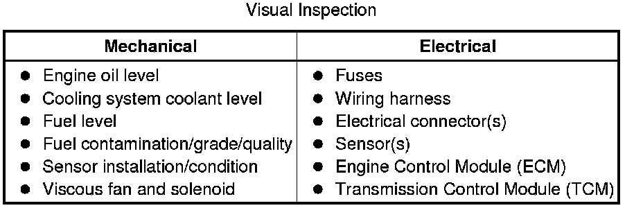 4 If the cause is not visually evident verify the symptom and refer to the Symptom Chart, alternatively check for Diagnostic Trouble Codes (DTCs) and refer to the DTC Index.