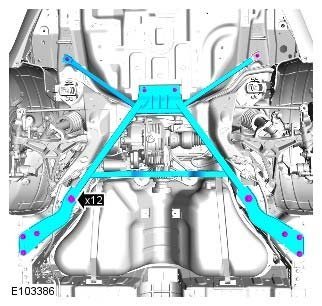 10. WARNING: Install the M12 subframe bolts prior to removing axle support.