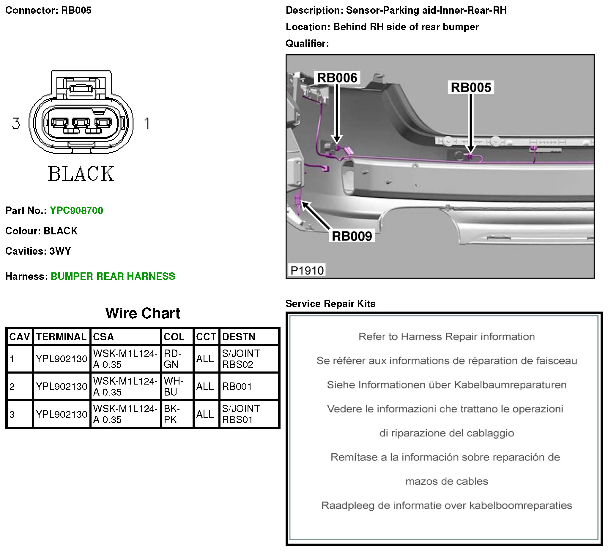 RB005 Sensor-Parking aid-Inner-Rear-RH
