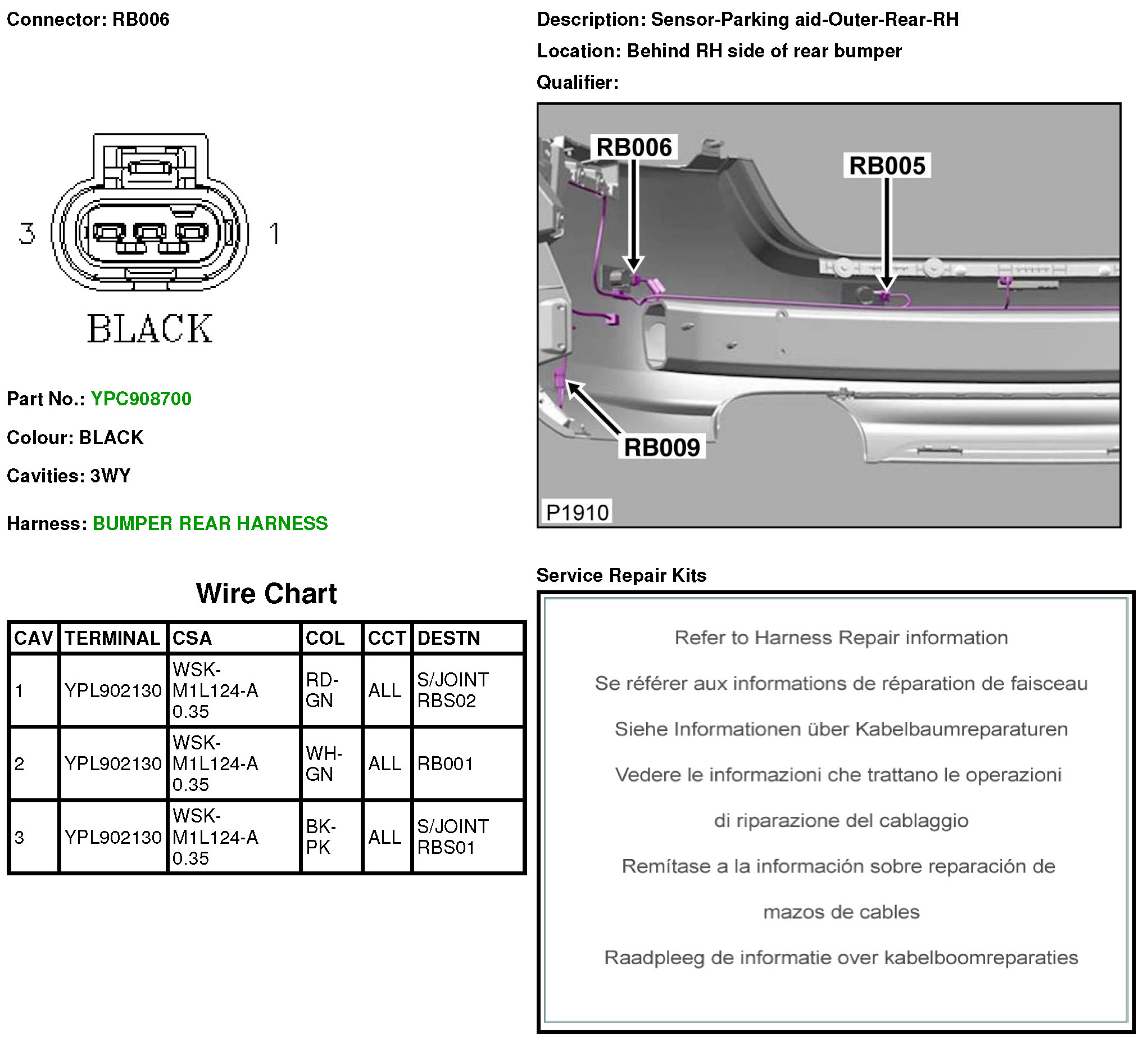 RB006 Sensor-Parking aid-Outer-Rear-RH