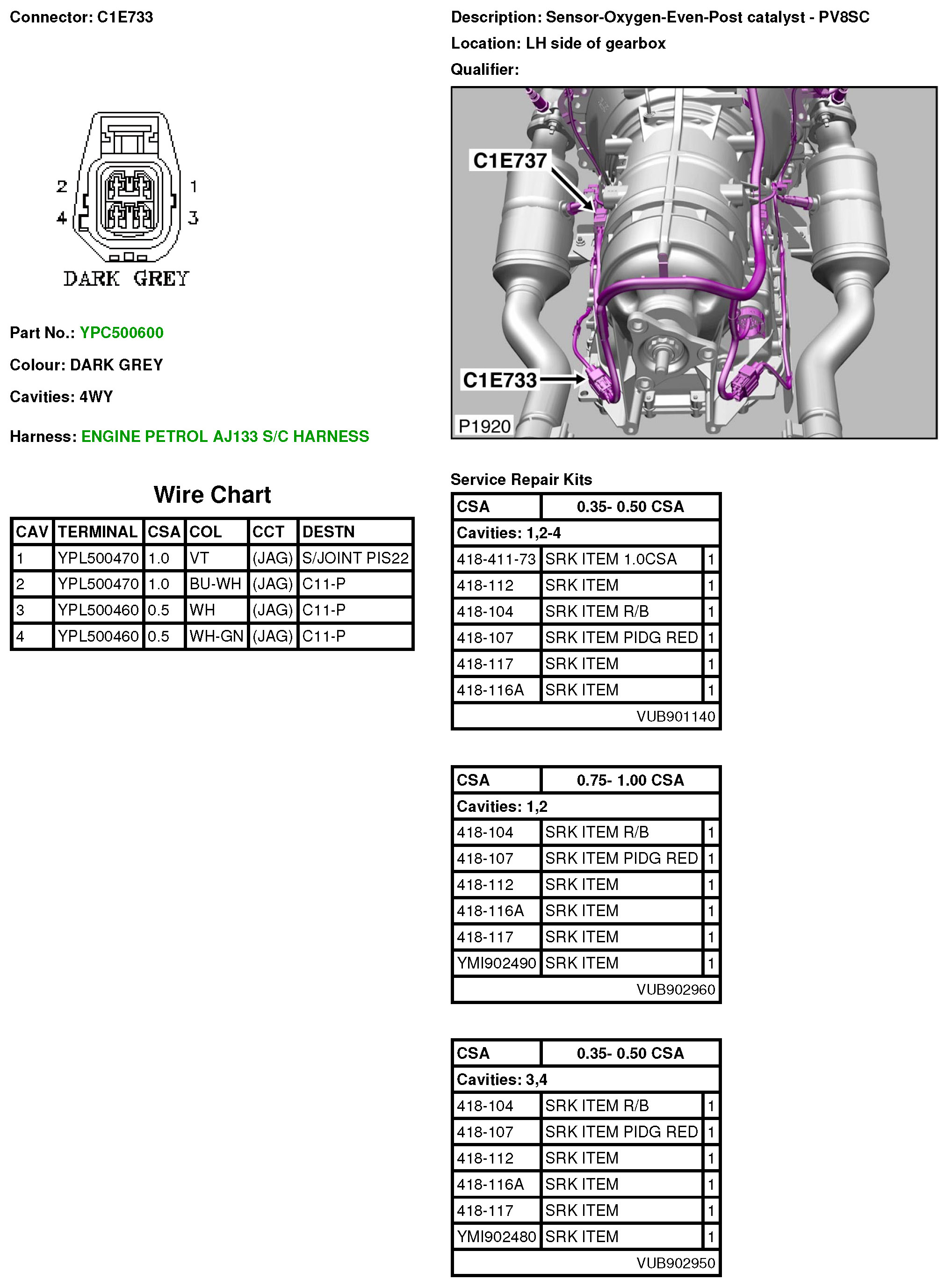 C1E733 Sensor-Oxygen-Even-Post Catalyst