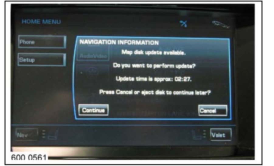 If an on-screen instruction appears on the touchscreen stating map update has paused; press the cancel button to continue the update.