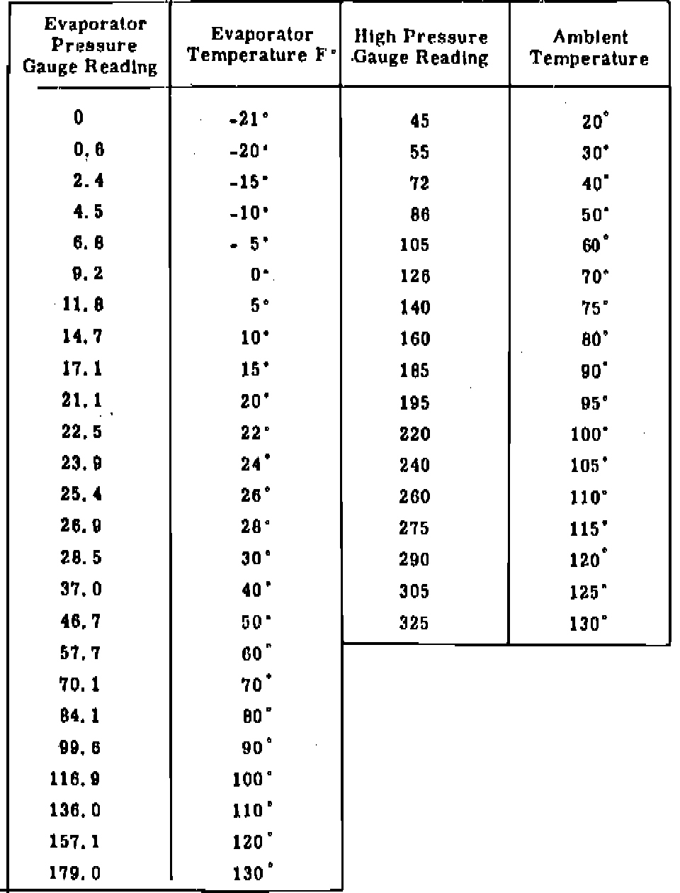 The high side pressure will definitely be affected by the ambient or outside air temperature. A system that is operating normally will indicate a high side gauge reading between 150-170 psi with an 80°F ambient temperature. The same system will register 210-230 psi with an ambient temperature of 100°F. No two systems will register exactly the same, which requires that allowance for variations in head pressures must be considered. Following are the most important normal readings likely to be encountered during the season.