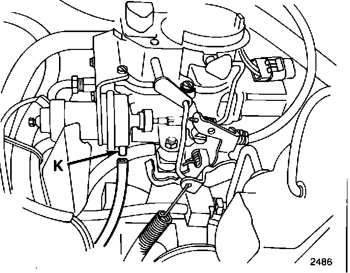 17. Remove the plug and connect the vacuum hose to the vacuum actuator.
