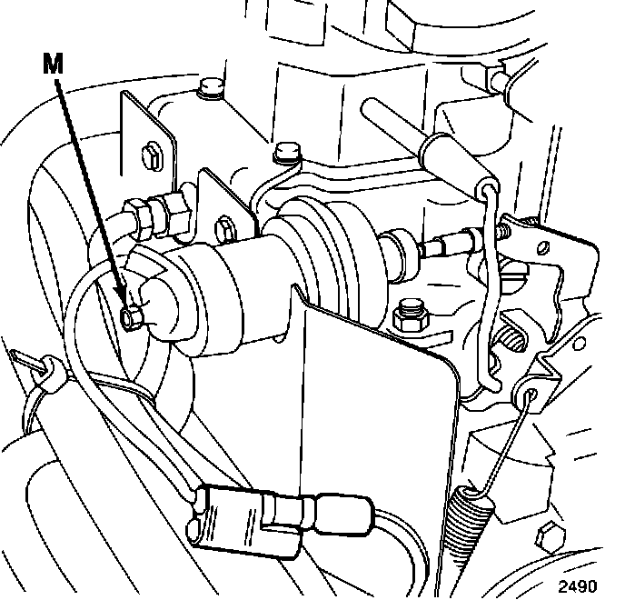 13. Adjust the Sole-Vac throttle positioner (M) to obtain the specified engine rpm. Refer to the Vehicle Emission Control Information label.