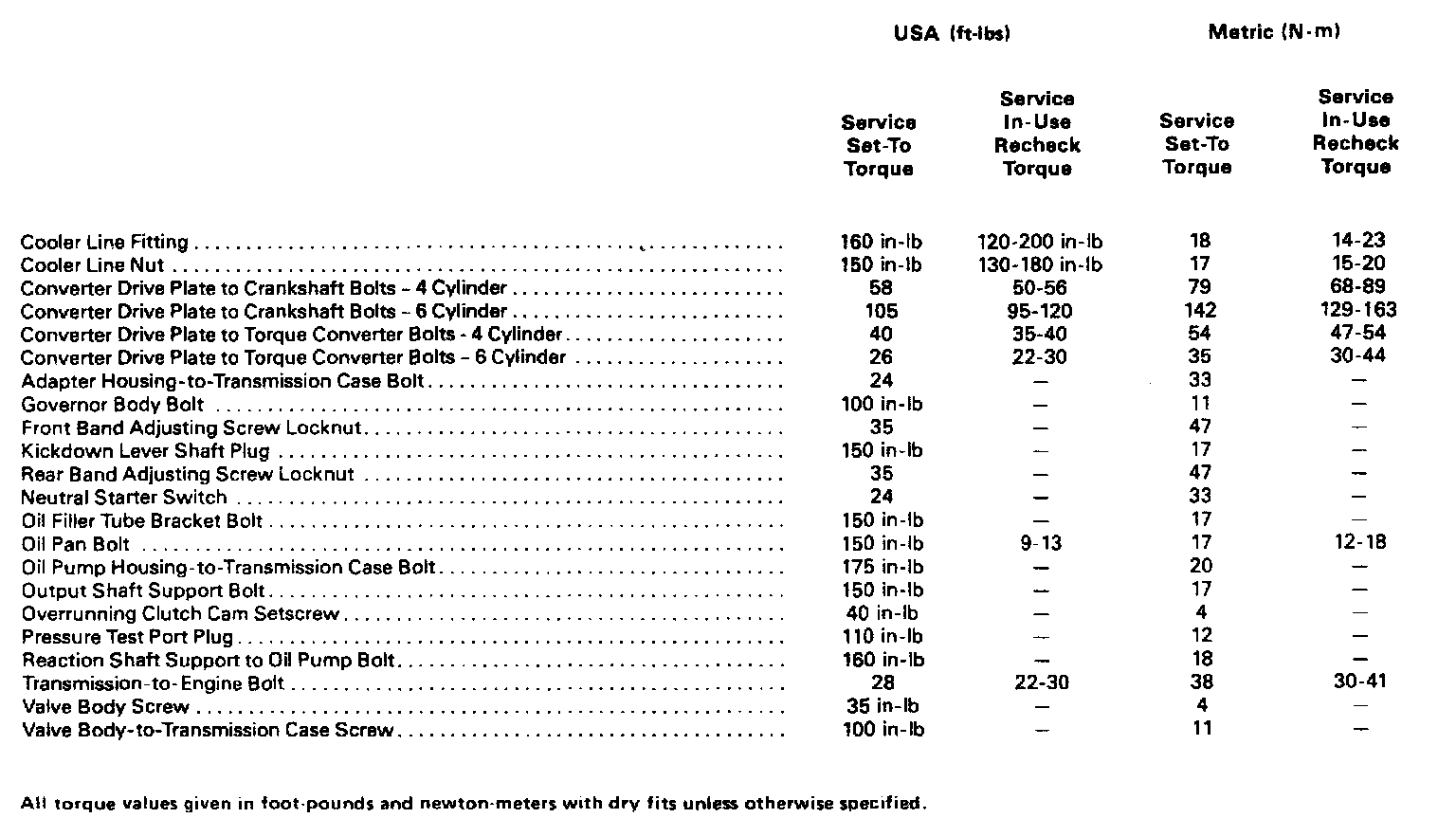 Service Set-To Torques should be used when assembling components. Service In-Use Recheck Torques should be used for checking a pre-tightened Item.