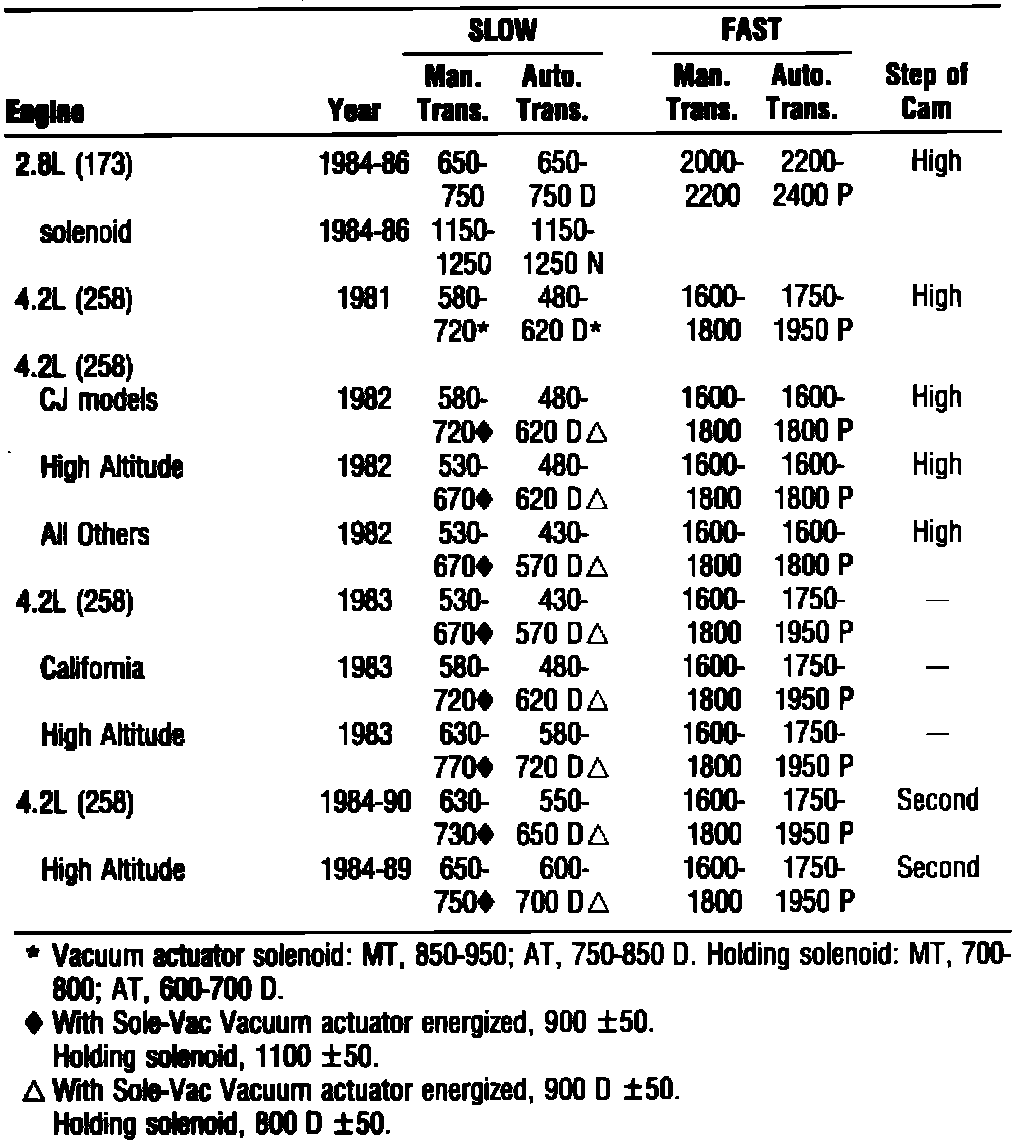 IDLE SPEED SPECS W/O COMPUTER CONTROL:
