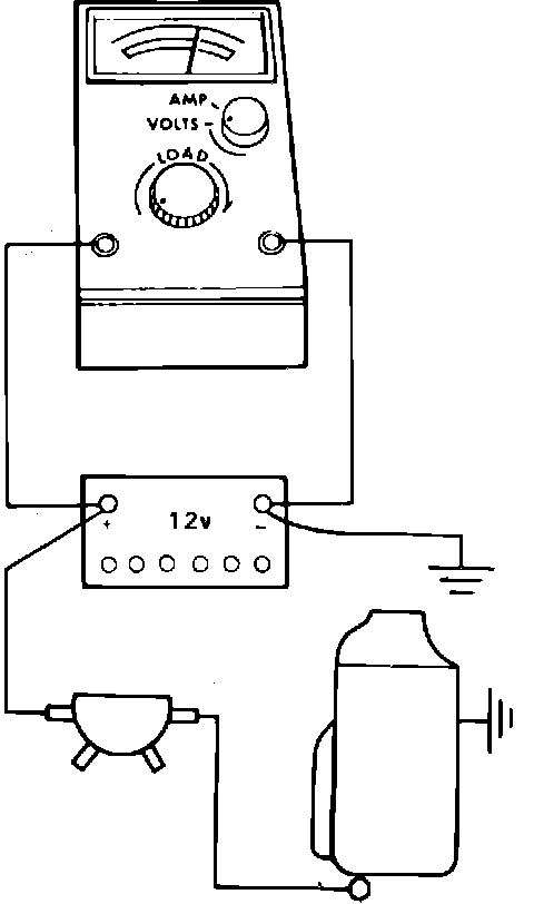 3. Connect circuit tester, then actuate remote starter switch and note voltmeter reading. Note voltage after starter has reached maximum RPM.