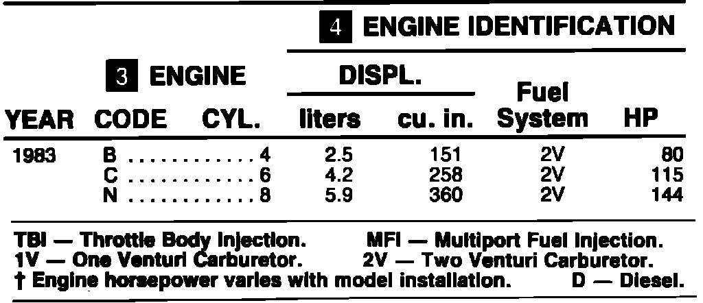 4 ENGINE IDENTIFICATION: On the line where the engine code appears, read to the right to identify the engine.