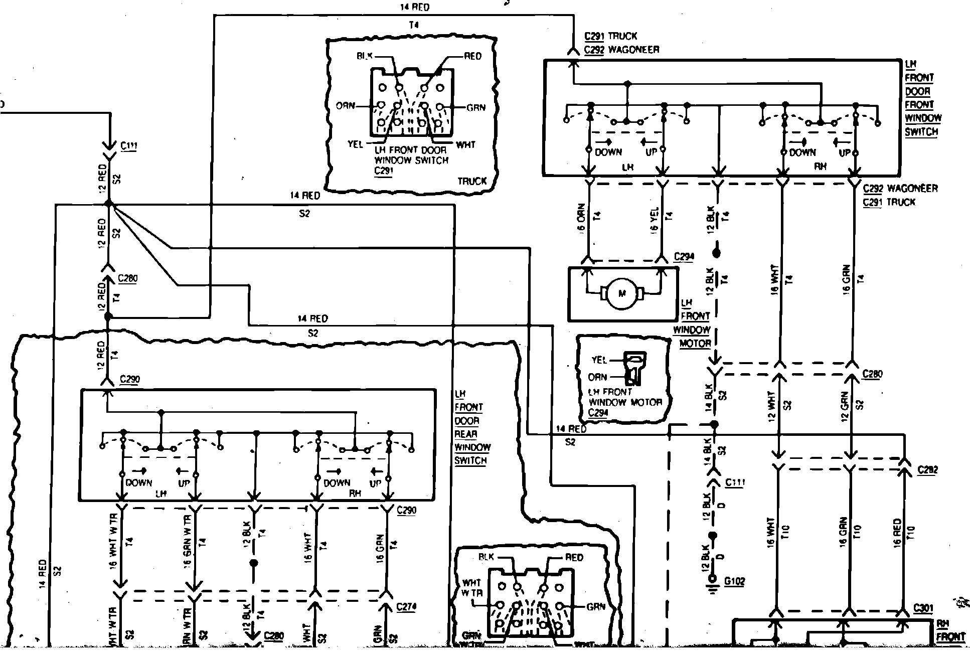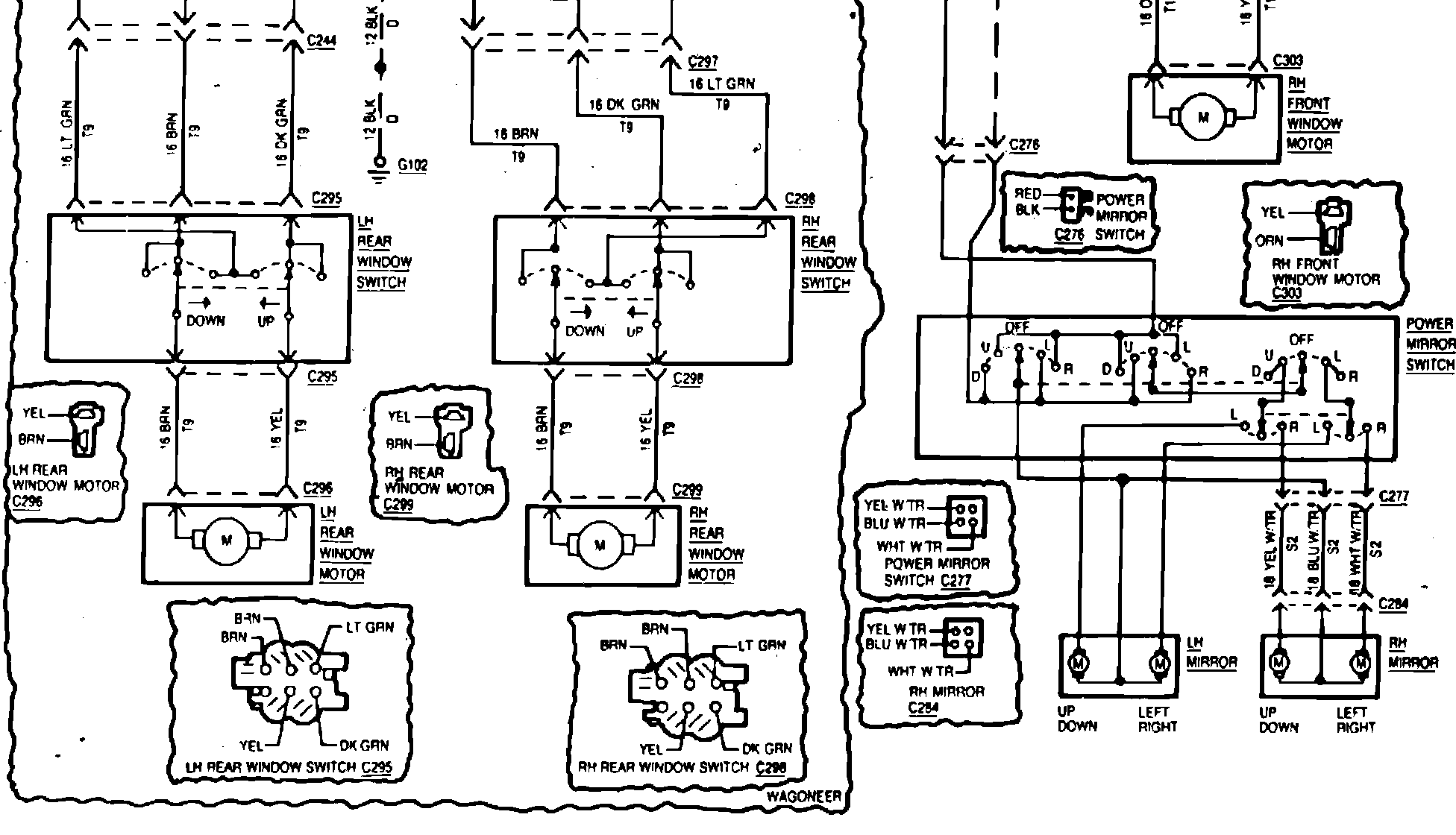 Fig. 9 Power Windows & Mirrors Wiring Circuit (Part 2 Of 2):