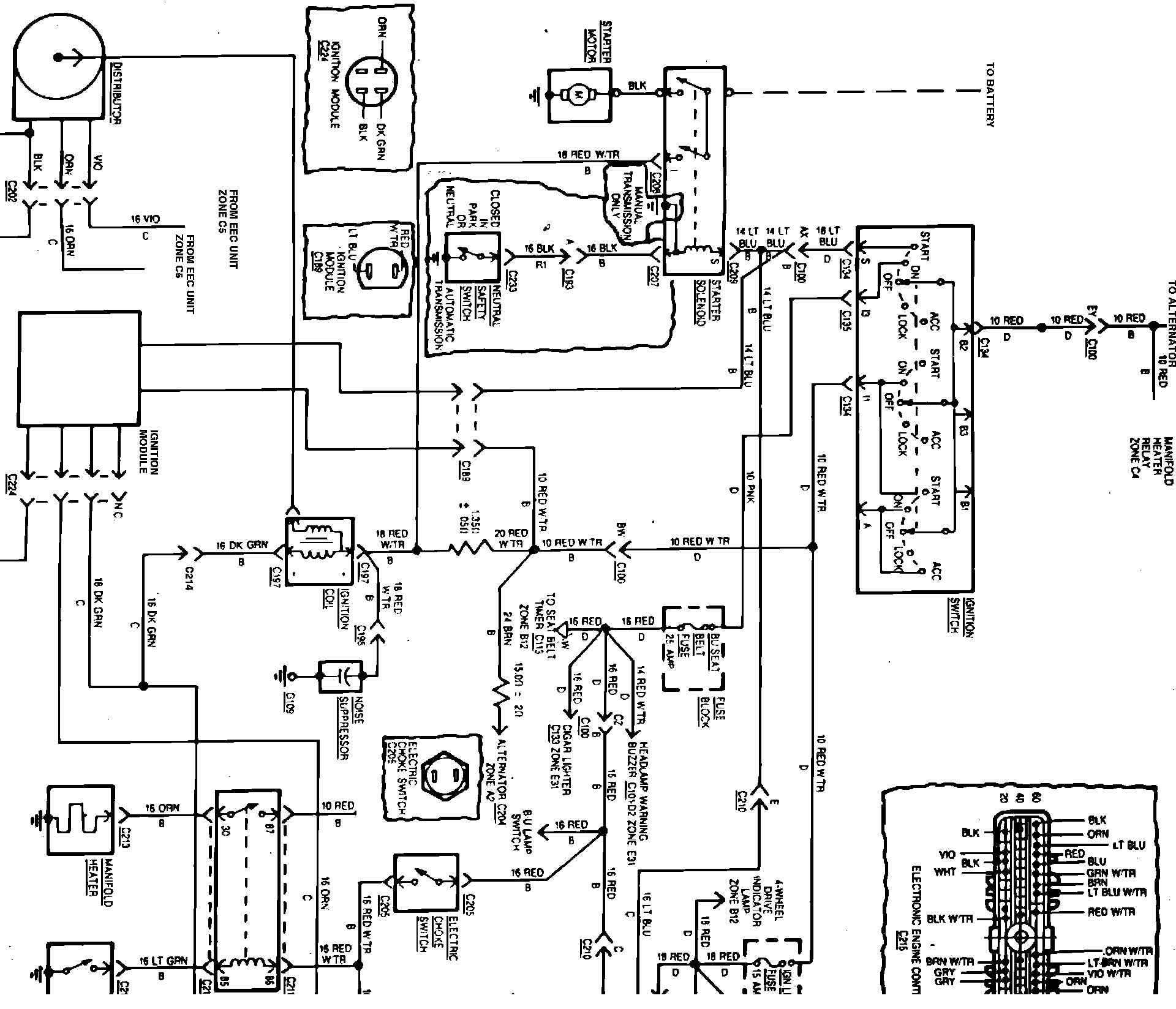 Fig. 10 Engine Wiring Circuit (Part 1 Of 4). 1983-84 6 Cylinder Engine: