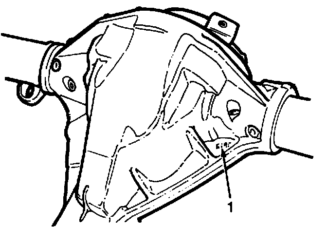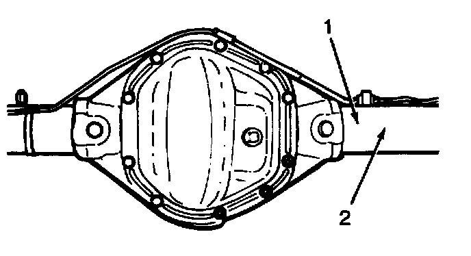 The axle build date (1) and manufacturer's part numbers (2) are stamped on the right-hand axle tube, adjacent to the cover.