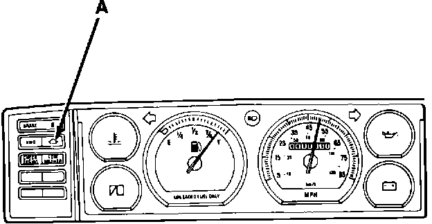 1985 Cherokee/Wagoneer 70 Series models with 4-cylinder engine and AX4 or AX5 manual transmission are equipped with an upshift indicator light. The light (A) is in the left side of the instrument cluster near the coolant warning light (Fig. 1).