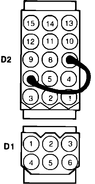 When a jumper wire is connected between diagnostic code test terminals No. 6 and No. 7 of the 15-terminal diagnostic connector (D-2) the CHECK ENGINE light will flash a code or codes that indicate the area(s) which may need service (Fig. 1).