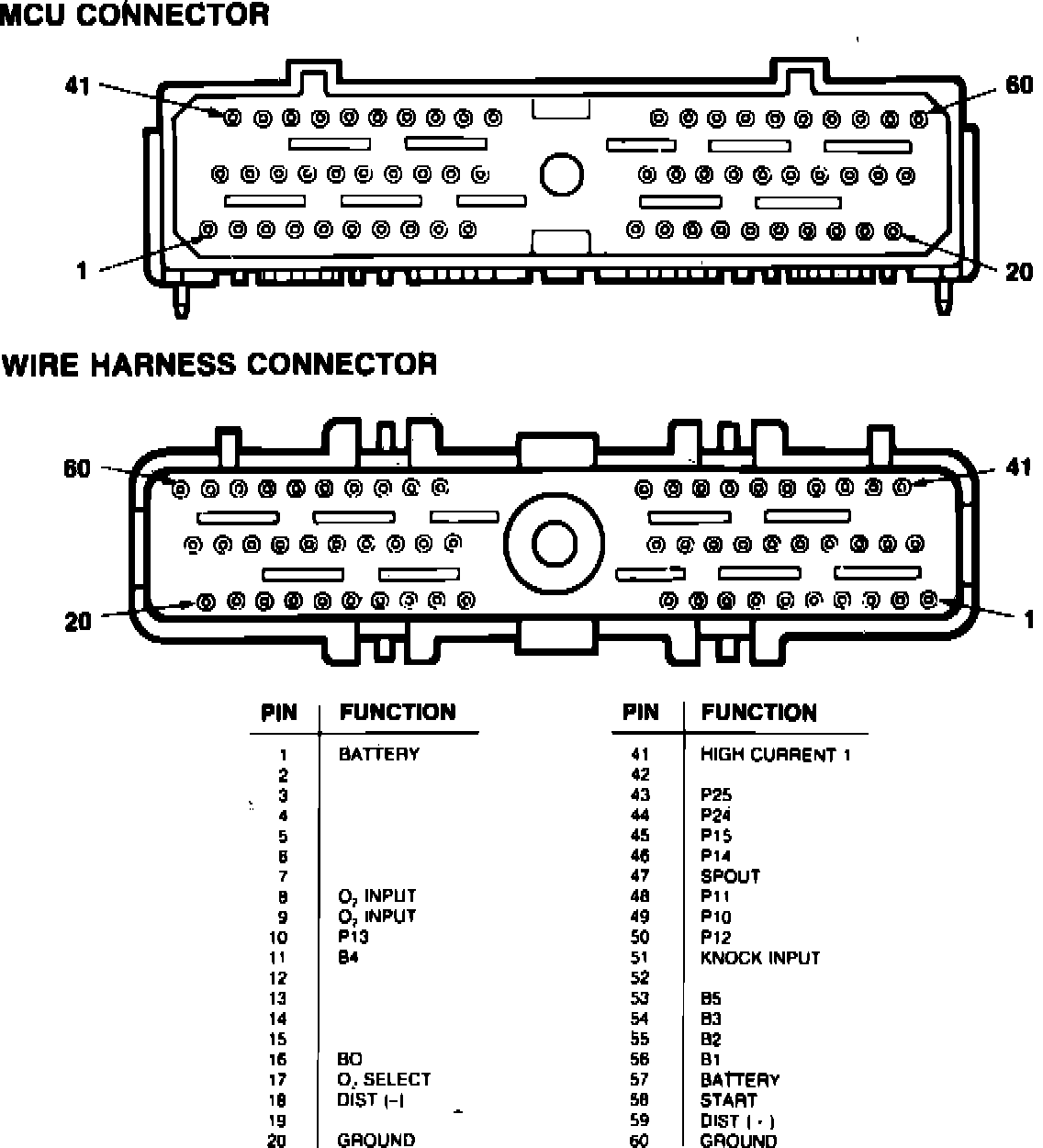 Fig. 40 MCU connector. 1984-87 6-258/4.2L: