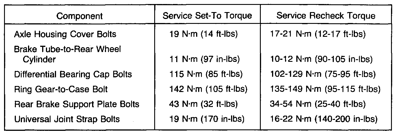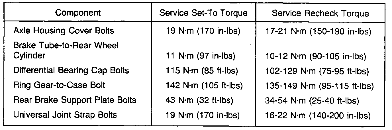 Torque Specifications, Heavy Duty Rear Axle.: