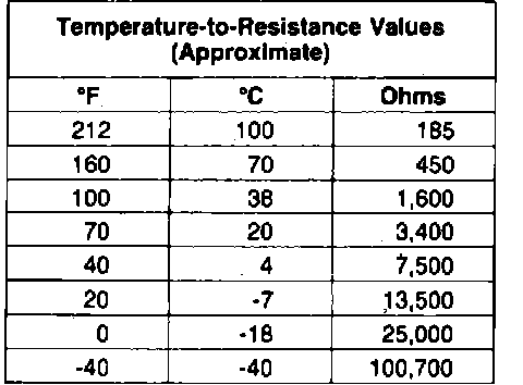Fig. 2 Coolant temperature sensor resistance values:
