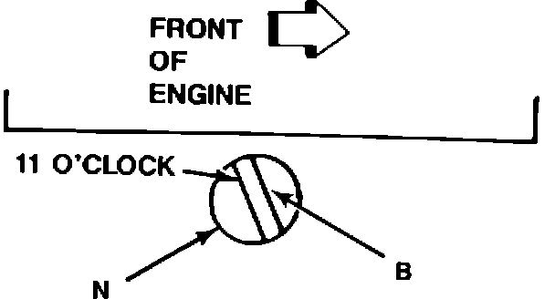 8. If necessary, using a flat blade screwdriver, turn the oil pump gear drive shaft (B) until the slot is slightly past the 11 o'clock position. The oil pump gear drive shaft is accessible through the distributor mounting bore (N) in the engine block. Figure 4