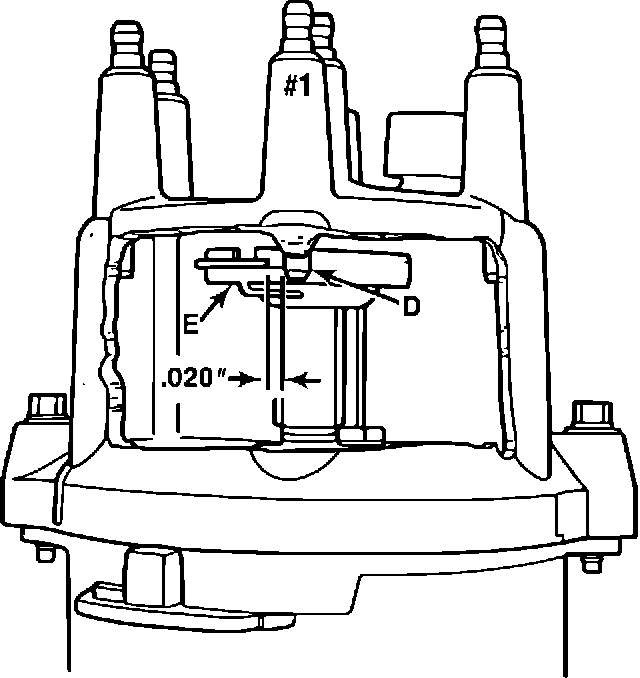 (E) is just departing from the #1 spark plug wire post terminal (D). Figure 7