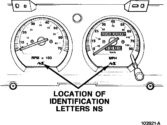 The Type II cluster is identified by the letters "NS" at the base of the speedometer and tachometer (or fuel gauge on models without a tachometer) (Fig. 1).