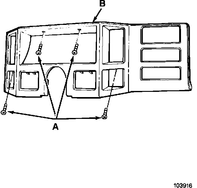 5. Install the instrument panel bezel (B). Align the bezel on the panel and snap it into place. Then install the bezel attaching screws (A) (Fig. 2).