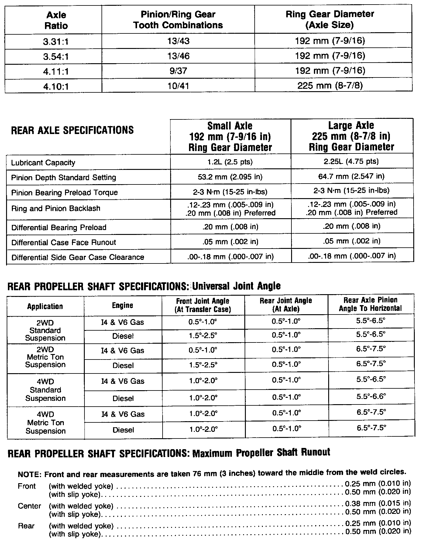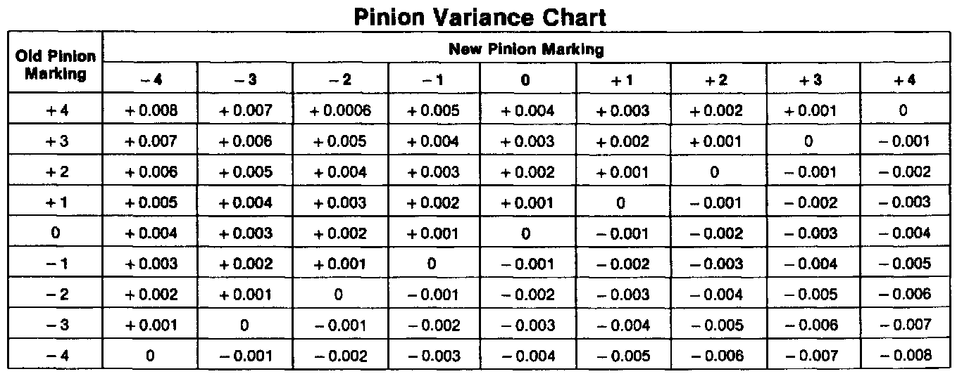 Heavy Duty, Pinion Variance Chart: